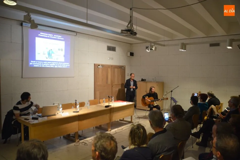 El salón de actos de la Biblioteca Pública Casa Conchas ha servido de escenario este miércoles para la presentación de la Literatura Abstracta de José Luis Blanco Hernández, un acto que ha contado con música en directo, fotos de grafitis, micro-relatos y mucha creatividad literaria.
