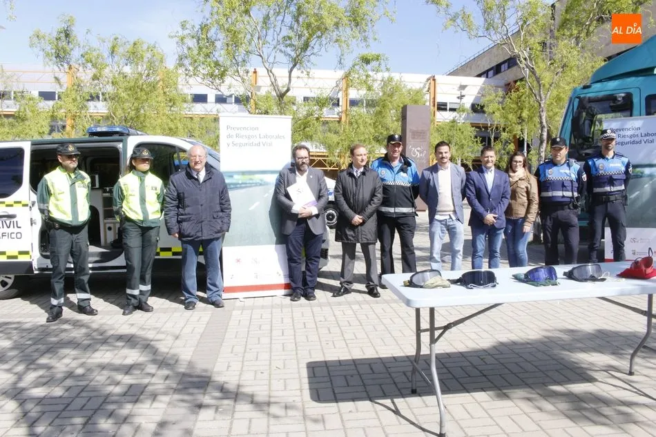 La Universidad de Salamanca, en colaboración con la Jefatura Provincial de Tráfico y el Ayuntamiento de Salamanca, ha organizado este jueves una jornada sobre seguridad vial y prevención de riesgos laborales que se desarrollaba en el Campus Unamuno de la Universidad de Salamanca.