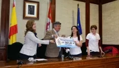 El Alcalde de Béjar ha hecho entrega a la Asociación de fibromialgia y Síndrome de Fatiga Crónica de Salamanca y Provincia (Afibrosal), el talón de 300 euros correspondiente a la recaudación del concierto de Ángeles Cembellín y José María Osa, que tuvo lugar el pasado dos de mayo en el Teatro Cervantes dentro de la programación de las Ferias de Mayo.