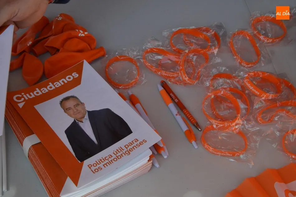 Mientras, en lo que respecta a Ciudadanos, entregaron ejemplares de un folleto que incluye varias medidas ?con imágenes- de su programa electoral, con el texto Política útil para los mirobrigenses, junto a globos, pulseras naranjas, abanicos, globos o bolígrafos. En los stands de PP y Ciudadanos estuvieron los cabezas de lista de ambas formaciones, Marcos Iglesias y Joaquín Pellicer, acompañados de varios integrantes de sus listas.