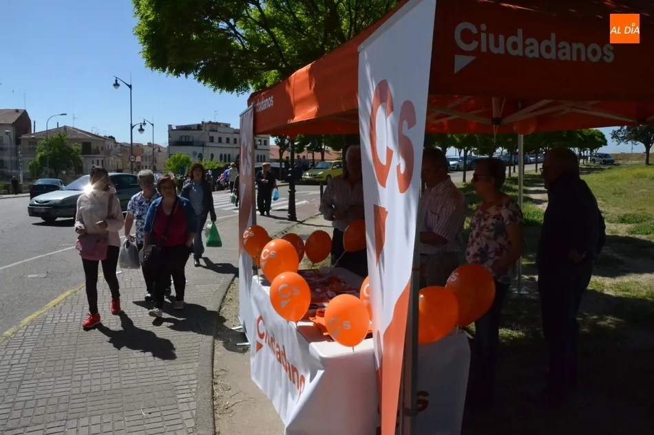 Después de que en las Elecciones Generales casi no hubiese ambiente electoral en el tradicional mercadillo sabatino de Ciudad Rodrigo (sólo estuvo el PP un día), el primer sábado de la campaña para las Elecciones Municipales sí dio algo más de animación al entorno del mercadillo, aunque ?a medio gas?, estando presentes Partido Popular y Ciudadanos, y ausentes PSOE e Izquierda Unida-Ciudad Rodrigo en Común.