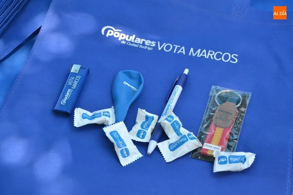 Los que sí estuvieron presentes, PP y Ciudadanos, montaron sendas carpas, en las cuales estuvieron repartiendo diferentes materiales. Por un lado, en lo que respecta al PP, entregaron a los ciudadanos que por allí iban pasando votos de su partido tanto para las Elecciones Municipales como para las Autonómicas, y variado merchandising preparado para la ocasión (es decir, con la leyenda ?Vota Marcos? y el nuevo logo del partido): bolsas de tela para la compra, mecheros, bolígrafos y llaveros, así como globos y caramelos.