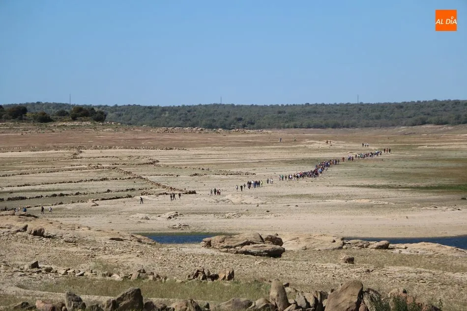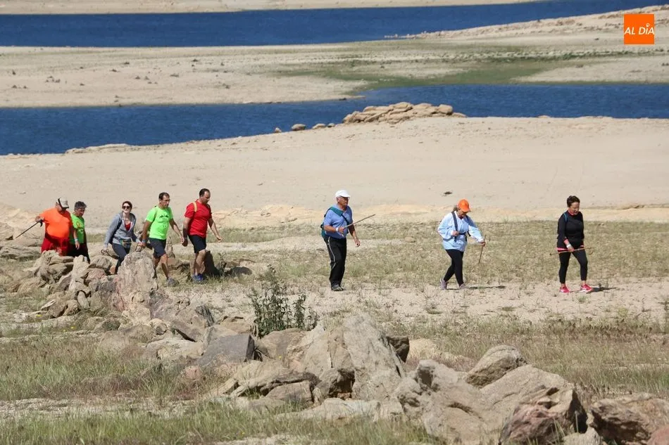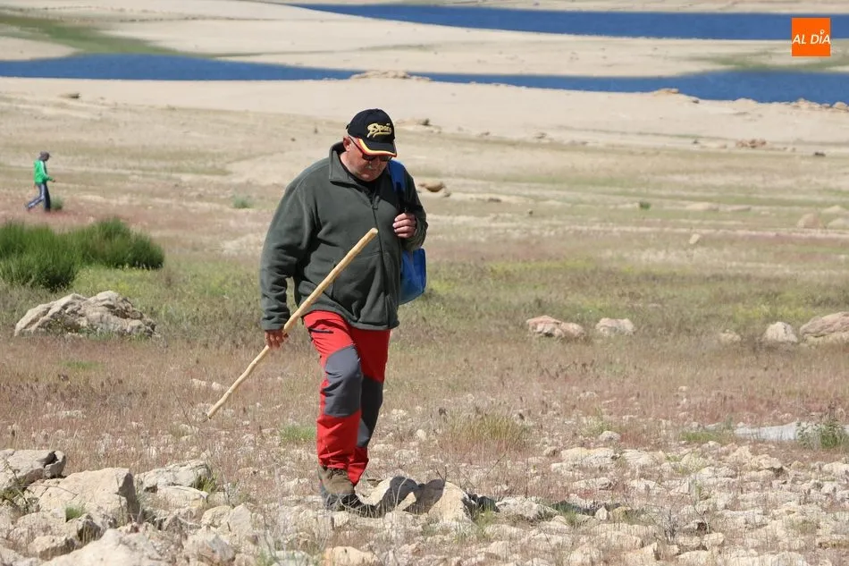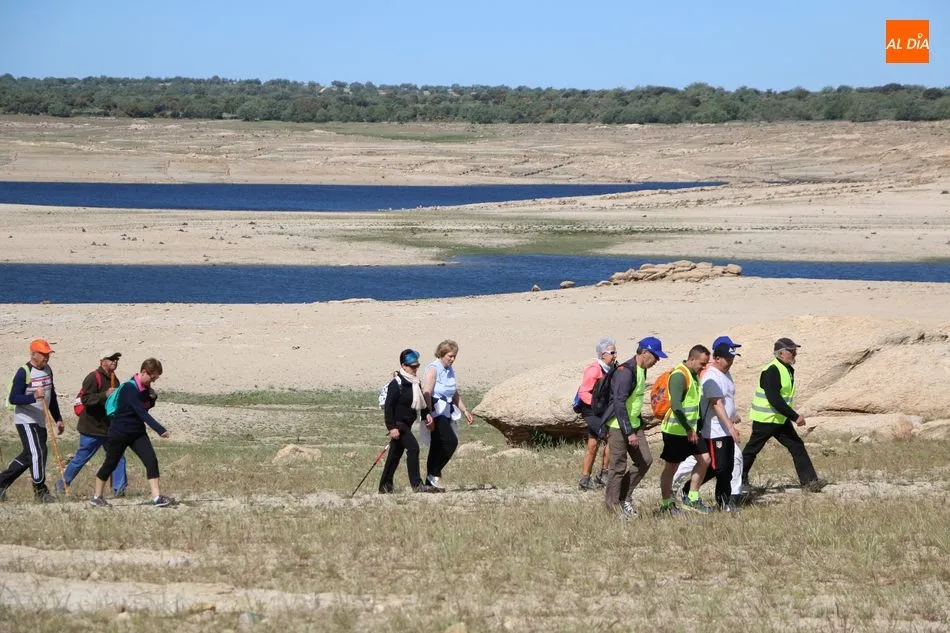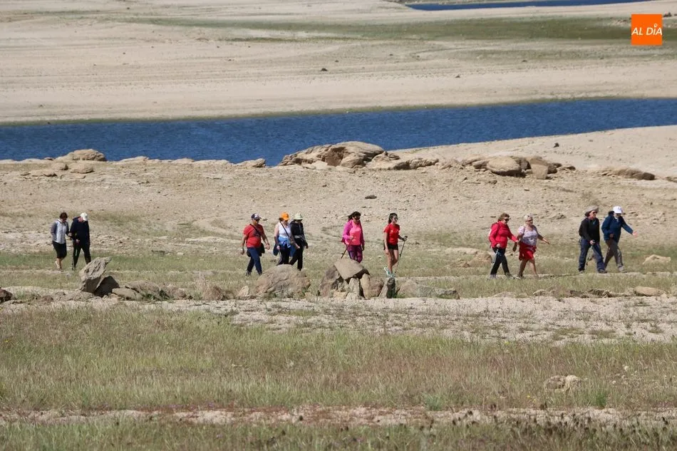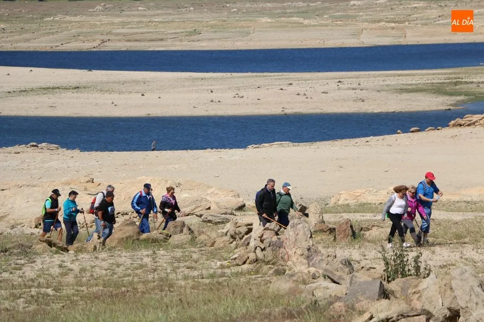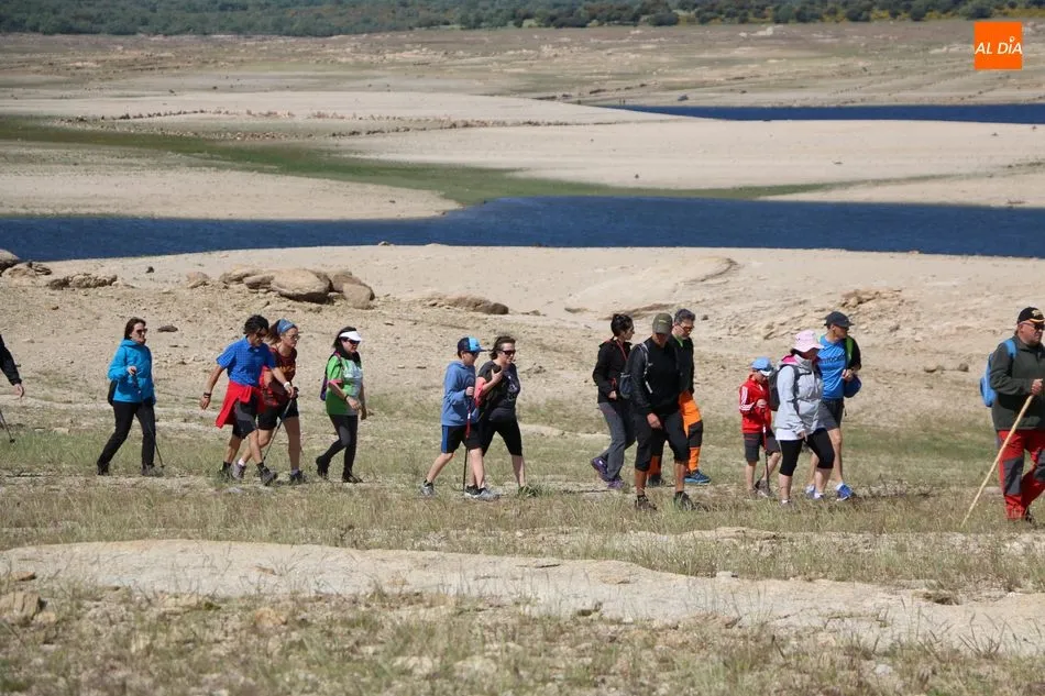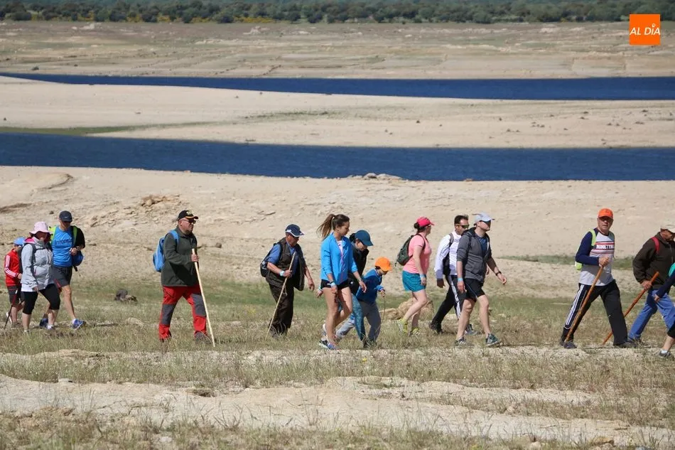 Bordeando la presa, más baja de nivel de lo que suele ser habitual por estas fechas, debido principalmente a la escasez de nieve en Gredos y de lluvias en la meseta, los senderistas llegaban al segundo avituallamiento, situado en la zona norte del término municipal y desde donde emprenderían el trazado final de regreso al pueblo.