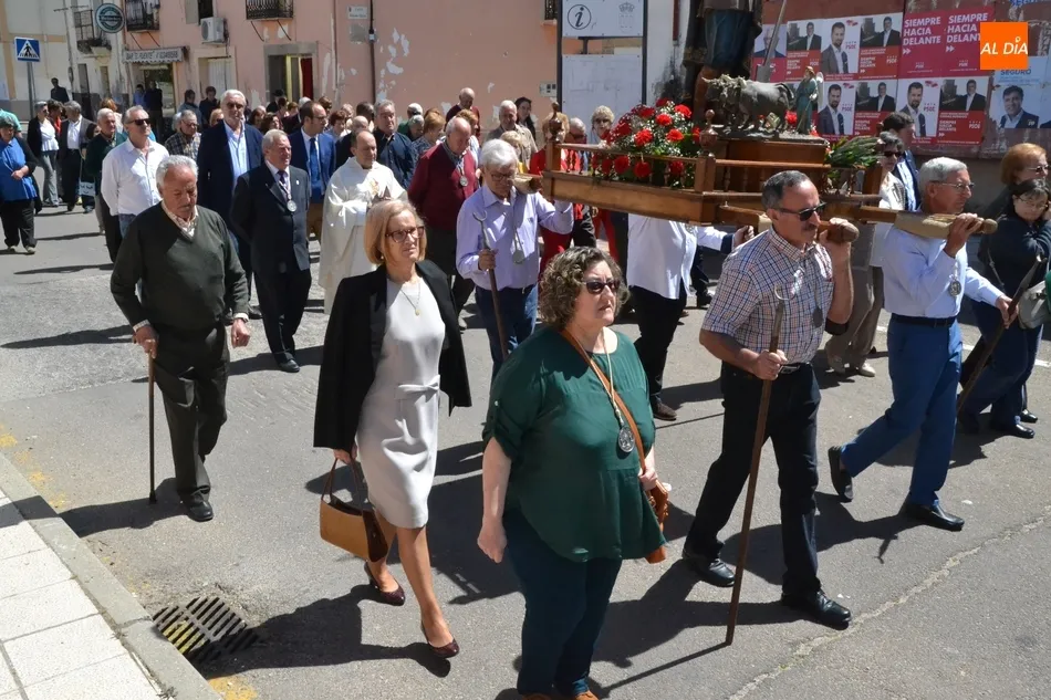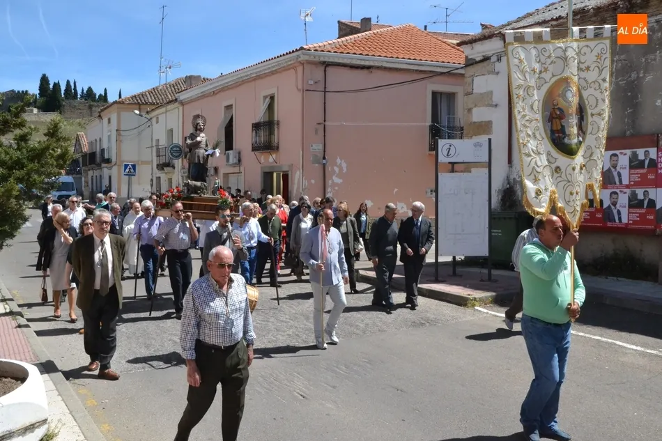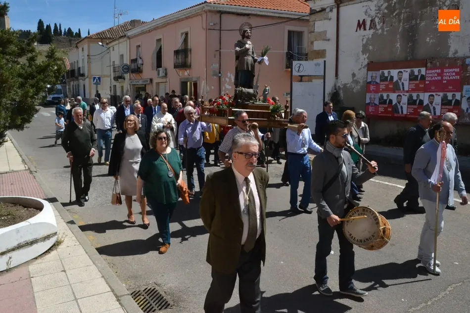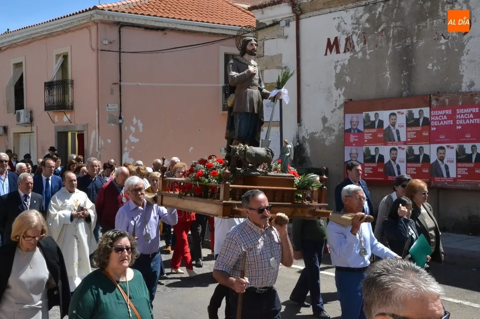 A su conclusión, llegó la hora de procesionar a San Isidro por las calles del barrio, en una comitiva con pocos fieles abierta por el estandarte de la Cofradía, seguido por el mayordomo de este año, Justo Iglesias Blanco, y por el tamborilero Sergio Montero ?El Manterito de El Bodón?; la imagen del Santo, y tras la misma Tomás Muñoz Porras y el presidente de las Cofradías del barrio, José Manuel Jerez; y los concejales Joaquín Pellicer, Marcos Iglesias y Jesús Sánchez Agudo.