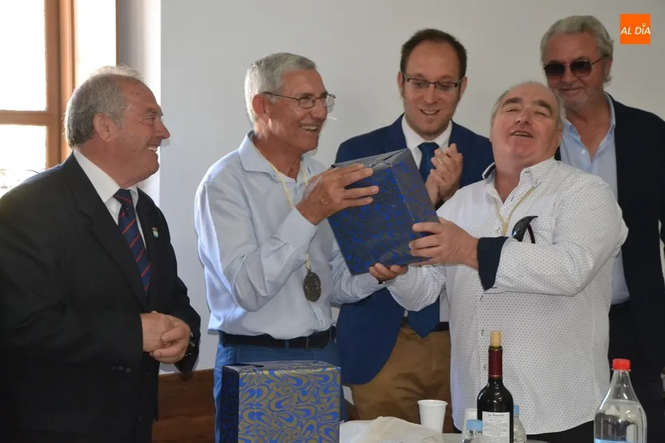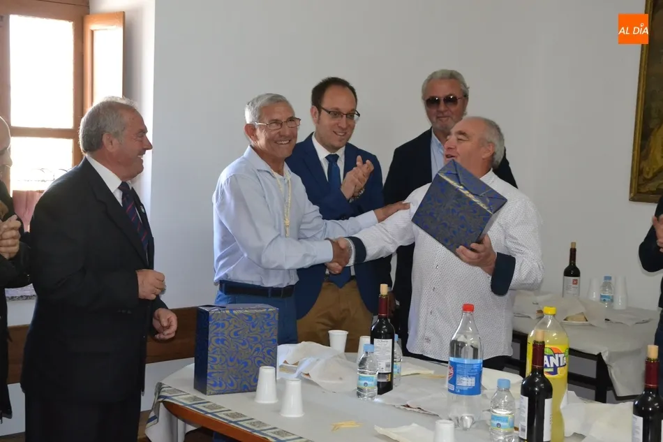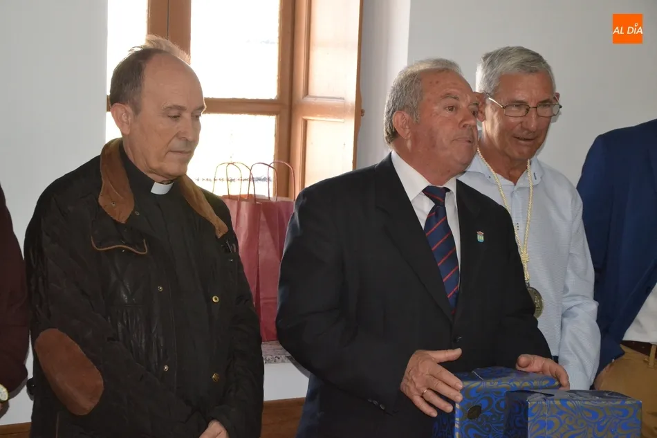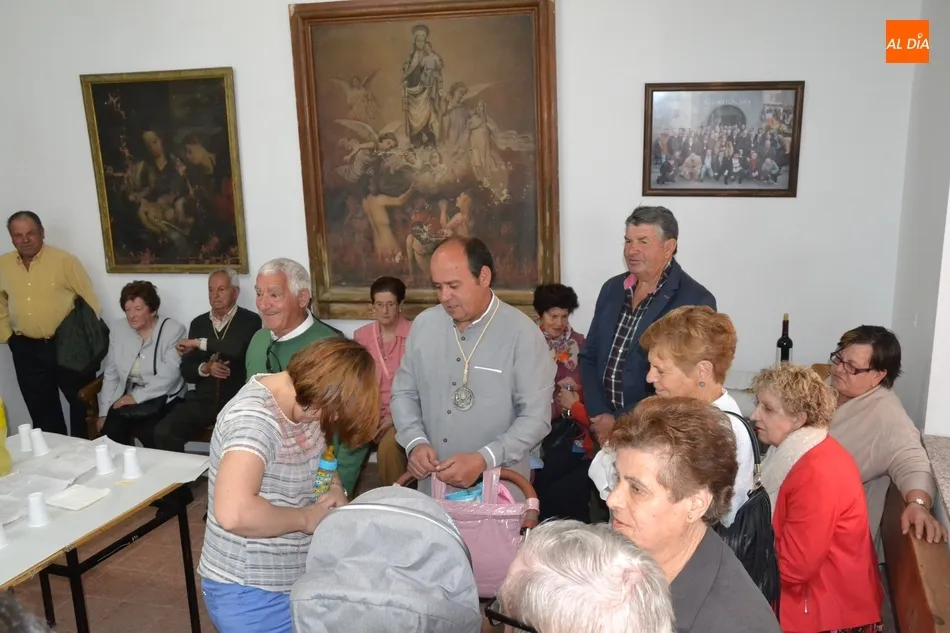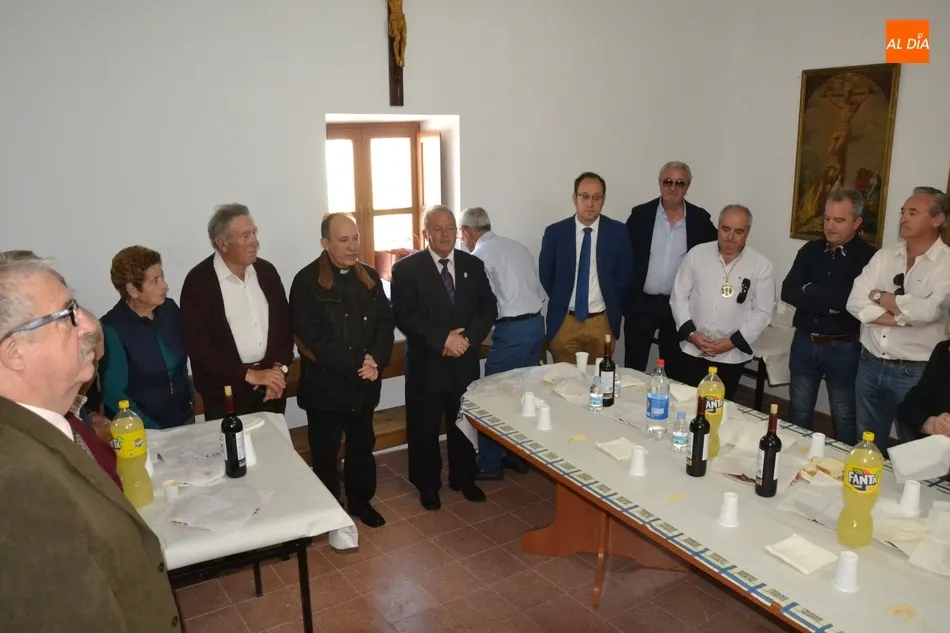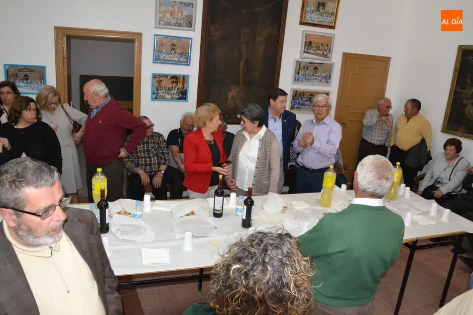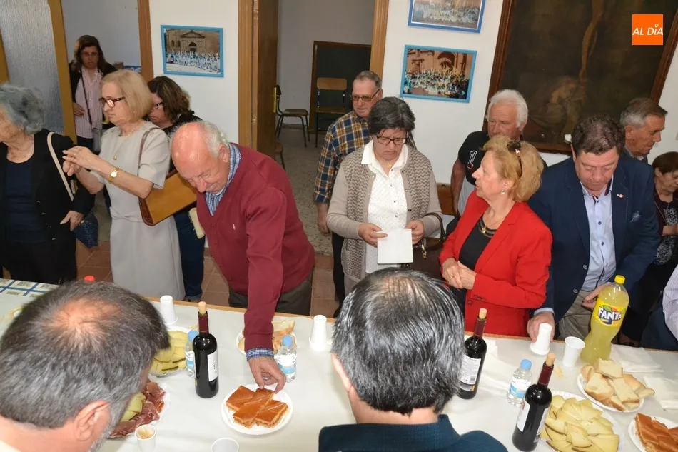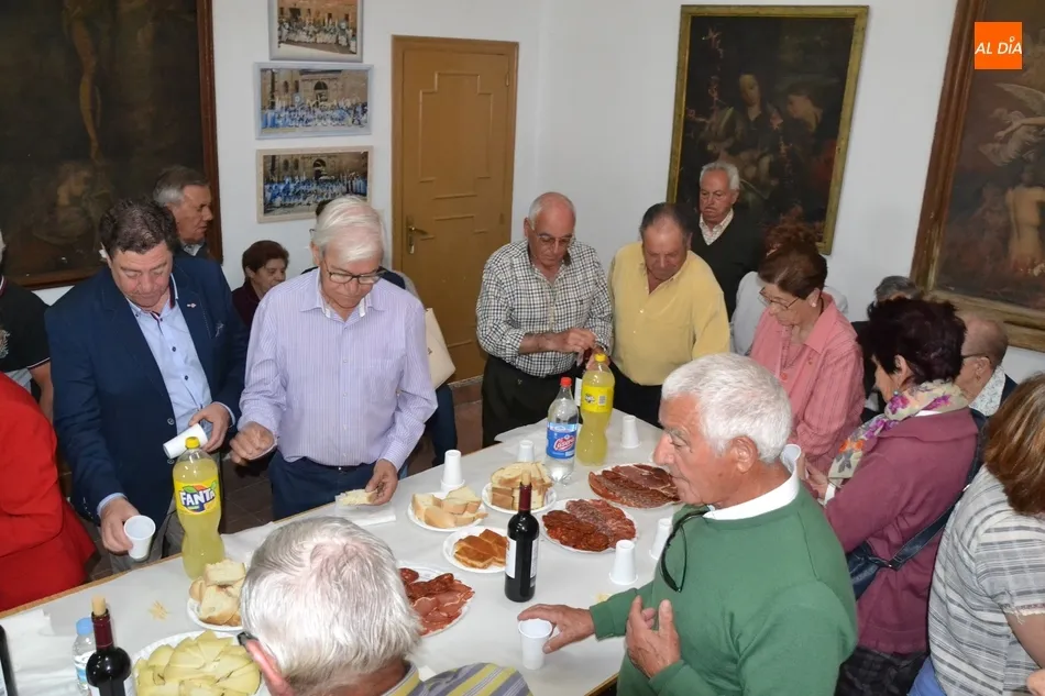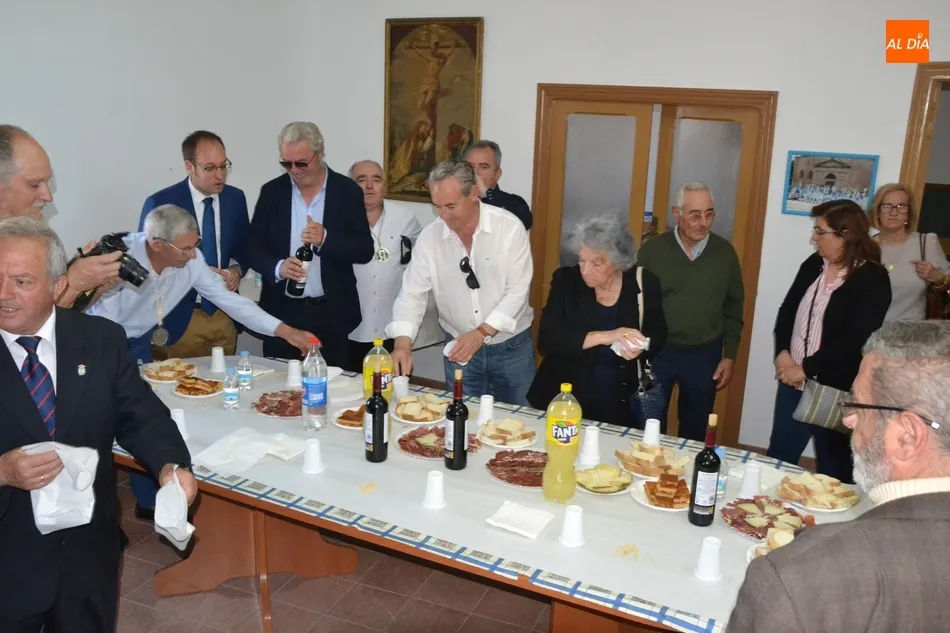 Finalizada la parte eclesiástica, los presentes se dirigieron hasta el Centro Parroquial, para disfrutar de un vino español. En el transcurso del mismo, llegó la hora de que la Cofradía del Santísimo, San Antón y San Isidro Labrador homenajease a dos de sus cofrades más antiguos, Ángel Castaño López y Santiago Calamote González. Al acto solo acudió el primero de ellos, Ángel Castaño, que recibió un obsequio, antes de comenzar a degustar las viandas preparadas.