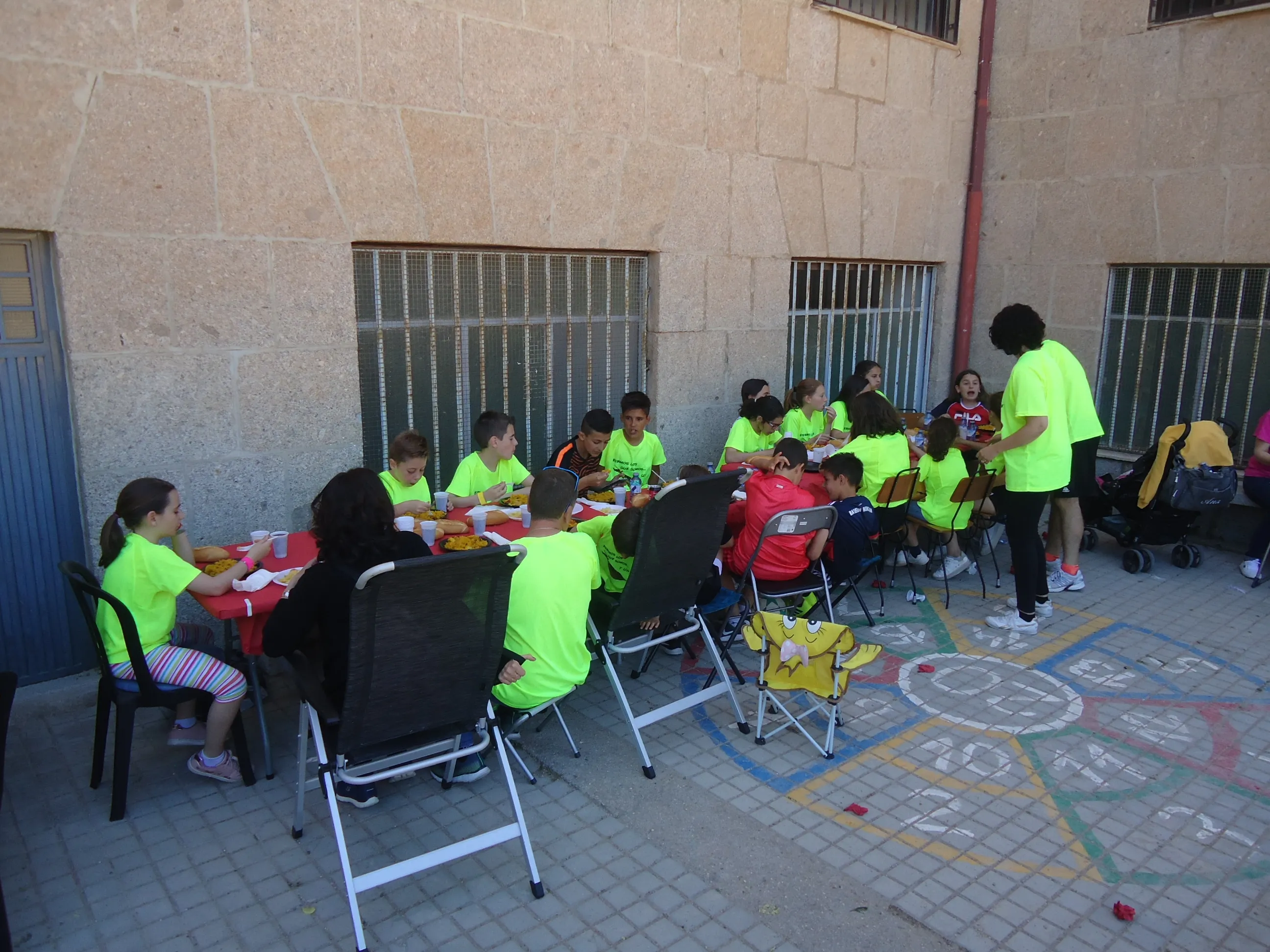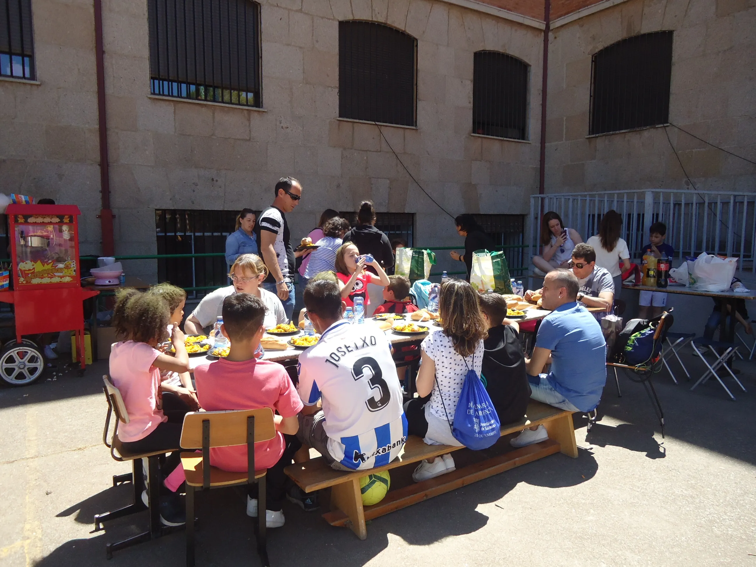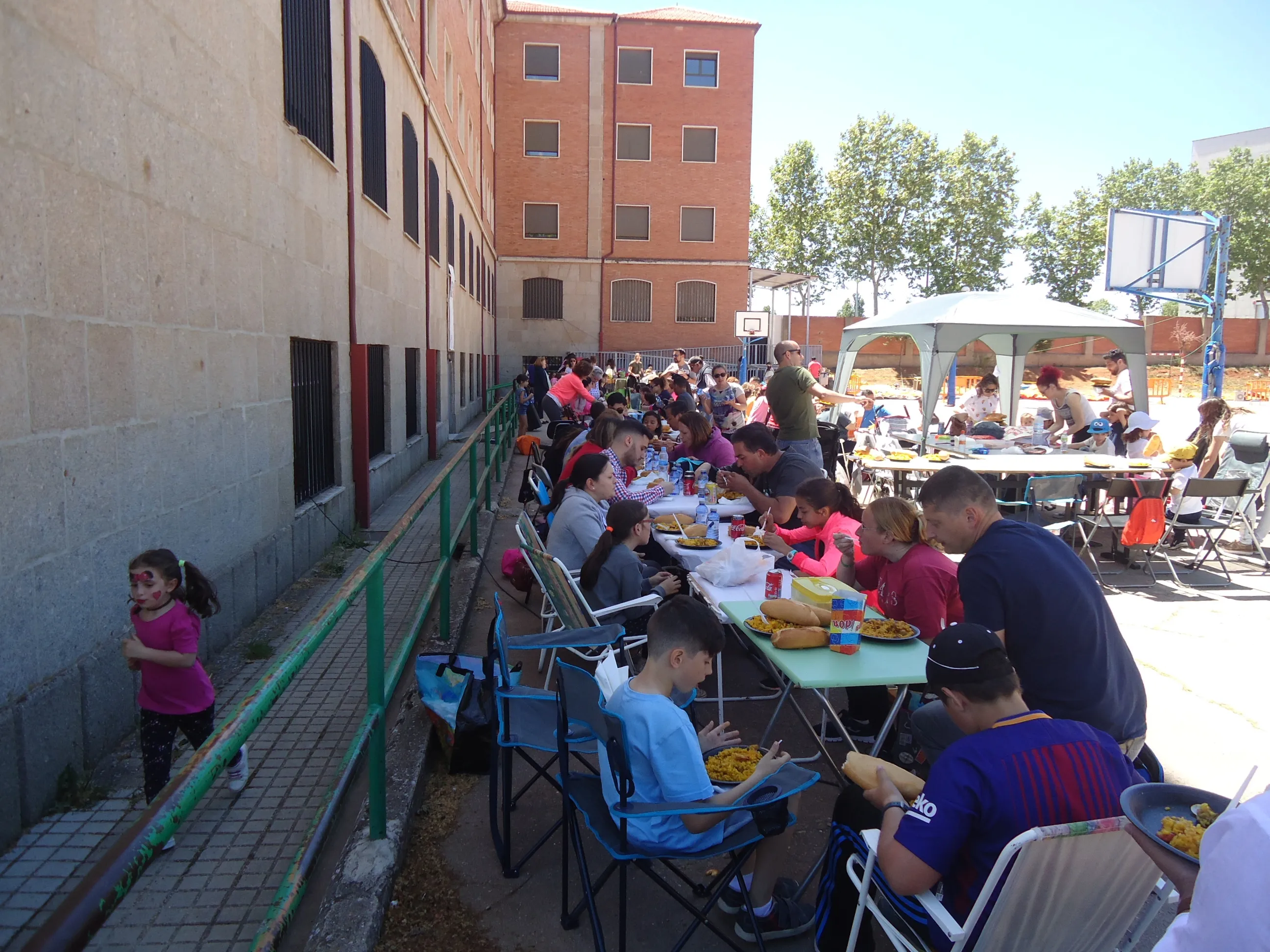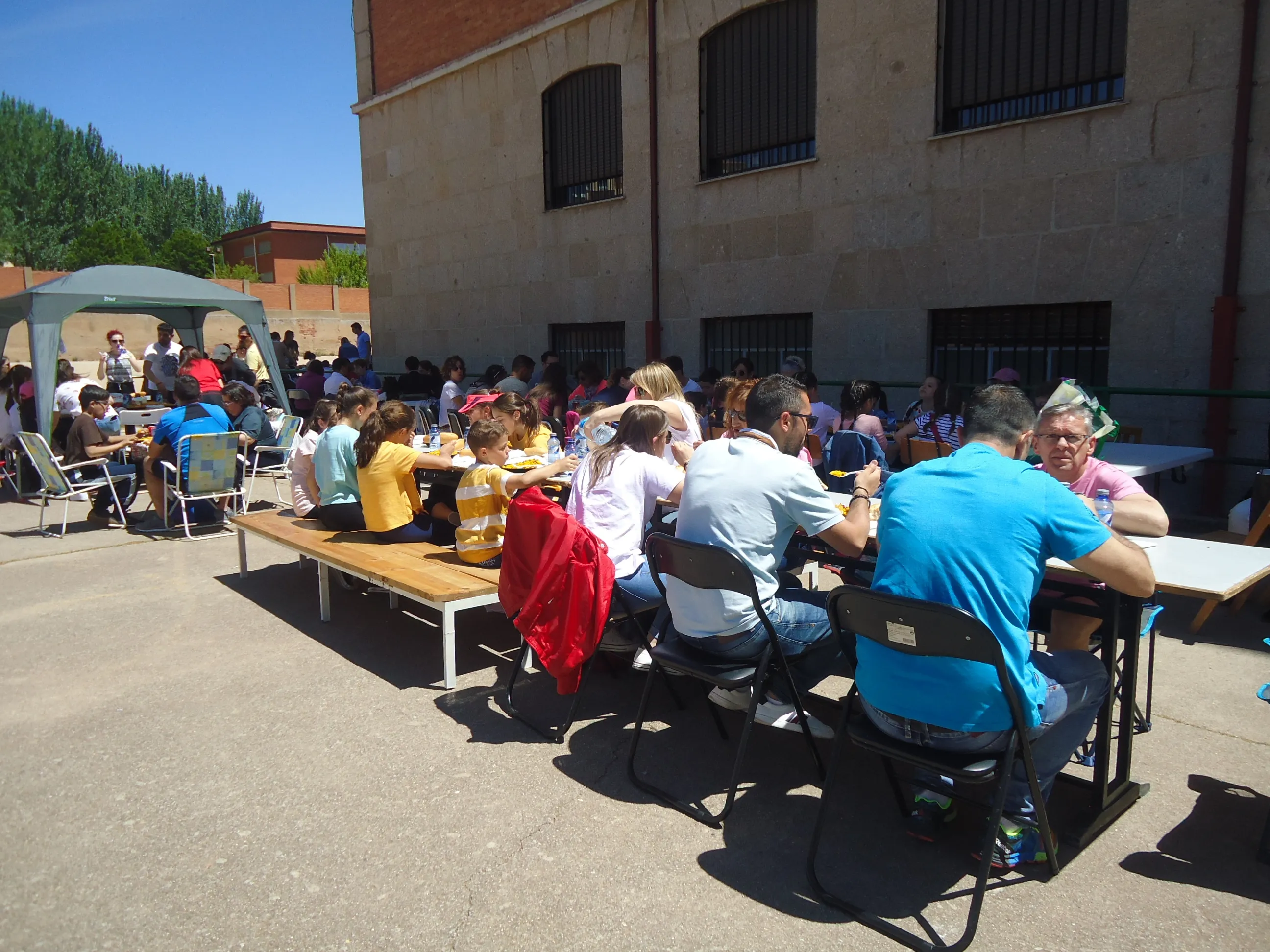 Las familias al completo disfrutaron de un día de convivencia en el patio del colegio, participando en juegos, degustando una sabrosa paella, divirtiéndose en los hinchables y despidiendo las fiestas hasta el próximo curso con un riquísimo chocolate con churros.