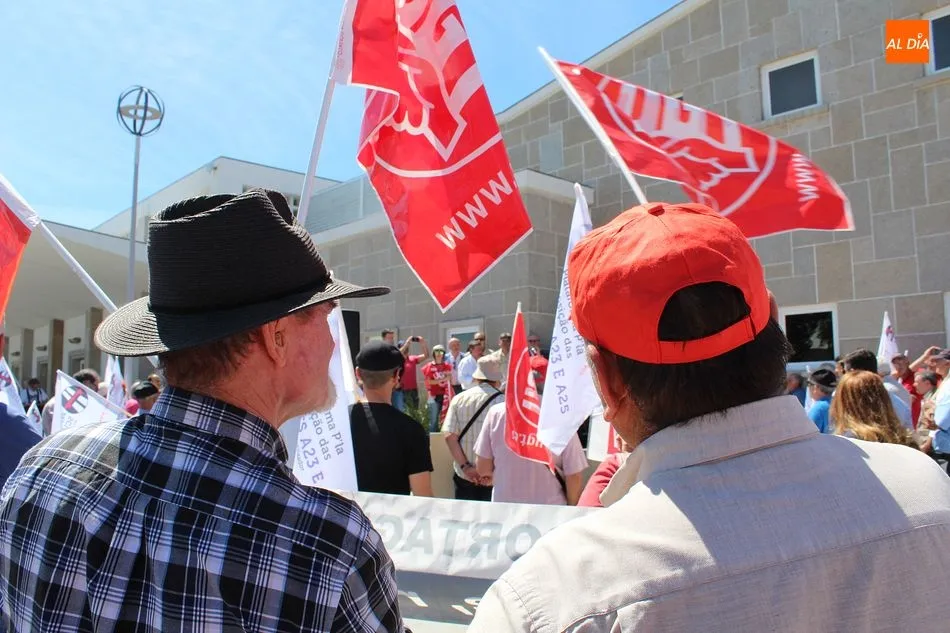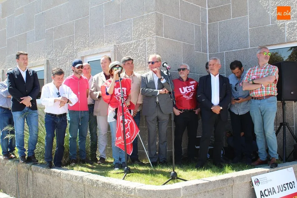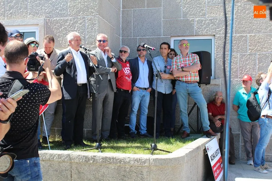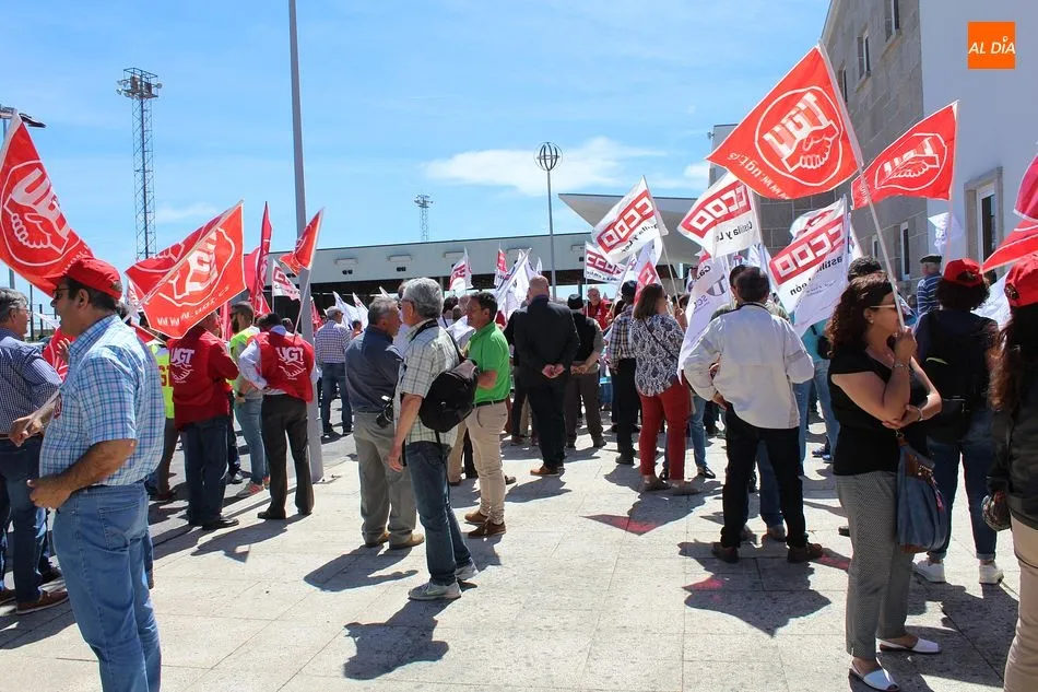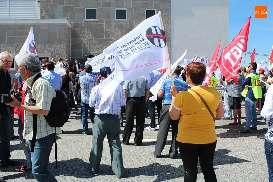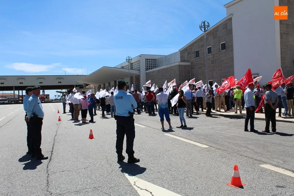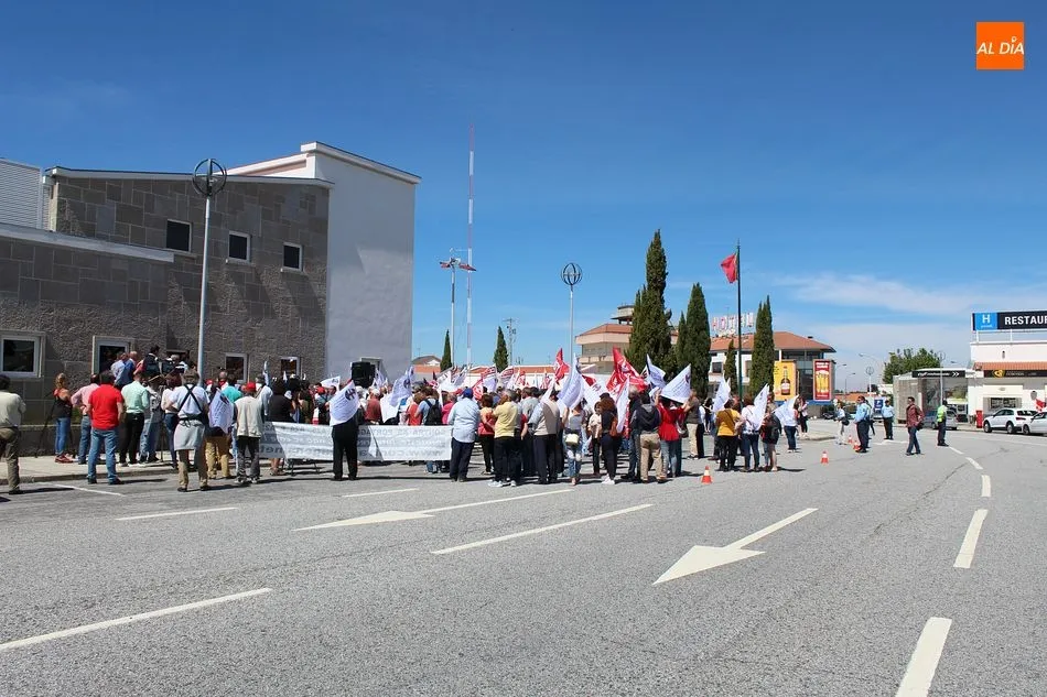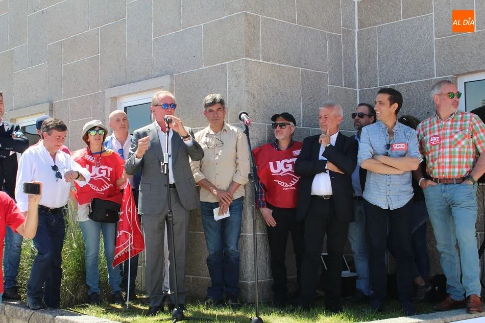 Entre doscientas cincuenta y trescientas personas, según la organización, se han congregado junto al edificio del Centro de Desarrollo Transfronterizo (CEDET) en Vilar Formoso. Entre ellos, una centena procedente de CCOO y UGT de Castilla y León. También han estado presentes el presidente de la Confederación de Organizaciones de Empresarios Salmantinos (CONFAES), Juan Manuel Gómez y su secretario general, Bernabé Cascón.