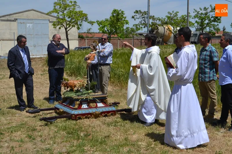 Tras ella, la imagen de San Isidro salía del Templo portada a hombros, para iniciar su breve procesión hasta una tierra cercana en la que se producía la ya tradicional bendición de los campos y el ágape ofrecido por los organizadores y que prolongaba el ambiente hasta bien entrado el mediodía, pidiendo nuevamente al Patrón de los labradores que traiga la tan necesaria lluvia que tanta falta hace a unas cosechas que ya se encaminan hacia su fase final.