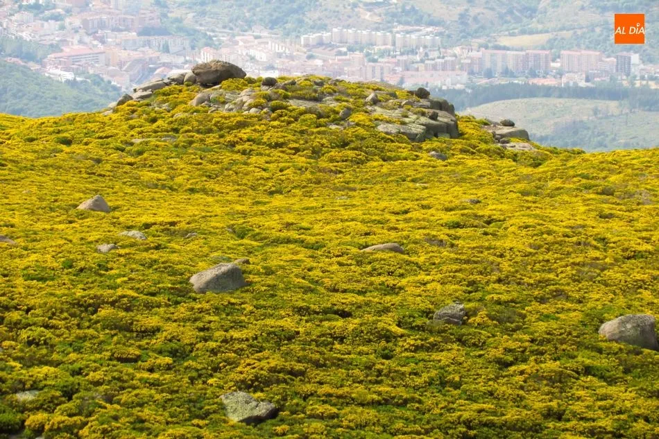 La montaña se viste de oro en la explosiva primavera y las pequeñas aves alpinas estrenan sus nidos de altura entre los piornos de la Sierra de Béjar. Un maravilloso espectáculo natural que puede visitarse cómodamente acerándose hasta las inmediaciones del pico del Águila y del pico Alaíz, por la carretera de la estación de esquí de La Covatilla.