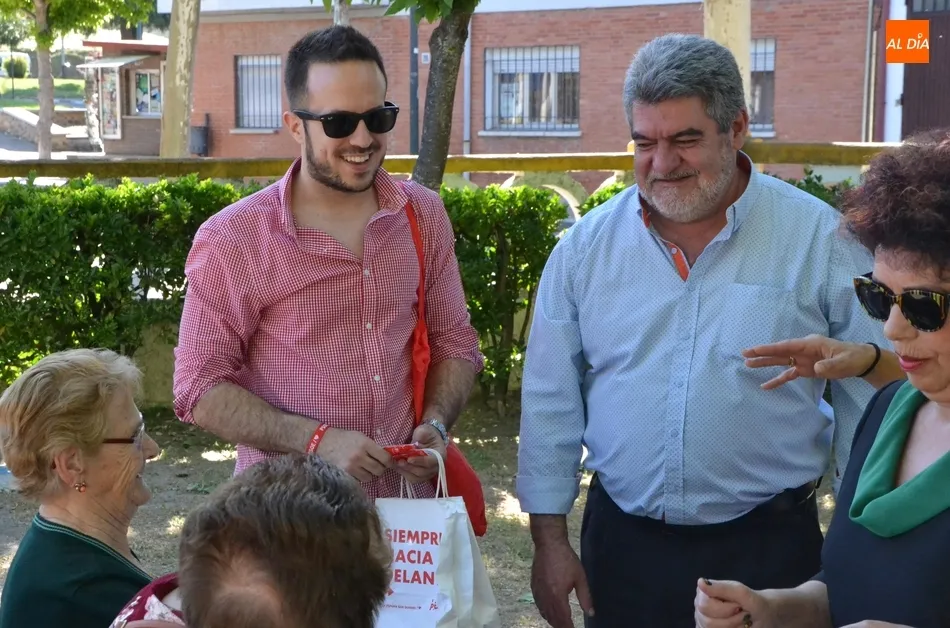 Varios miembros de la candidatura del PSOE al Ayuntamiento de Ciudad Rodrigo, encabezados por el actual alcalde, Juan Tomás Muñoz, se adentraron en la tarde del miércoles en el céntrico Parque de La Glorieta para repartir propaganda electoral a todos los que por allí estaban.