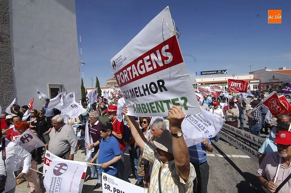 La frontera hispano-lusa (exactamente la parte portuguesa) fue escenario en la mañana del miércoles de la protesta de unas 200 personas contra los telepeajes actualmente vigentes en Portugal en las autopistas A23 y A25. La protesta había sido convocada inicialmente por una plataforma que aglutina a los sindicatos, usuarios de autopistas y asociaciones empresariales de la zona de Guarda y Castelo Branco (una de las más desfavorecidas de Portugal), sumándose a la misma distintas entidades del otro lado de la frontera, como Confaes, Comisiones Obreras, o la Unión General de Trabajadores.