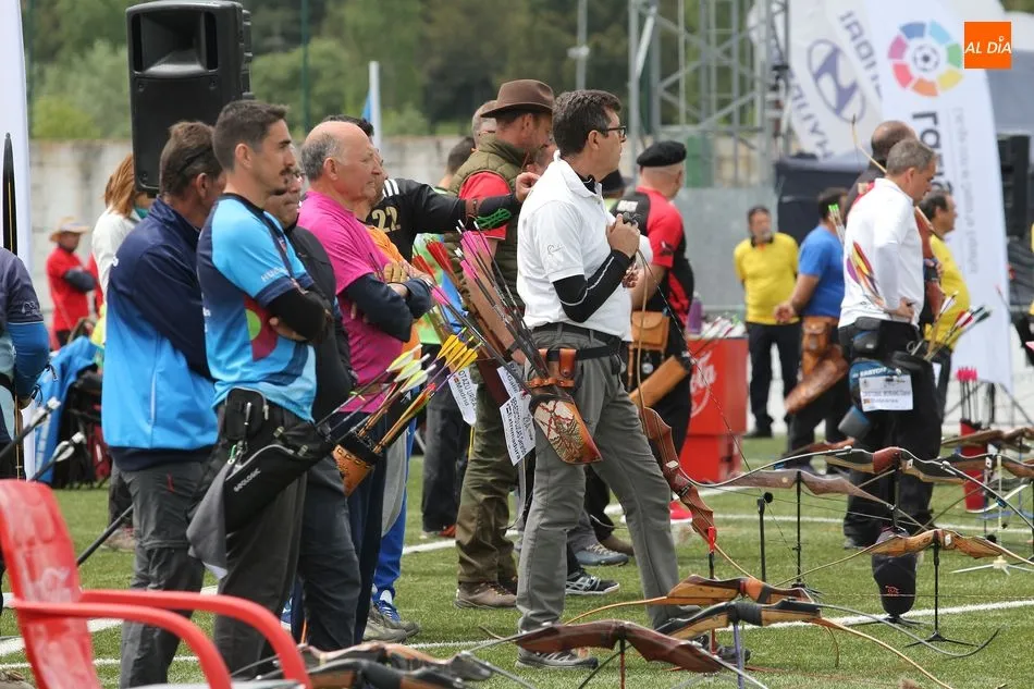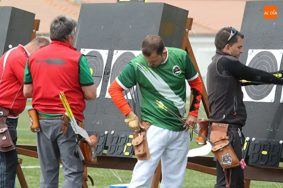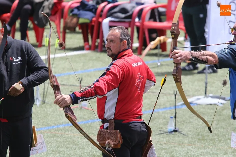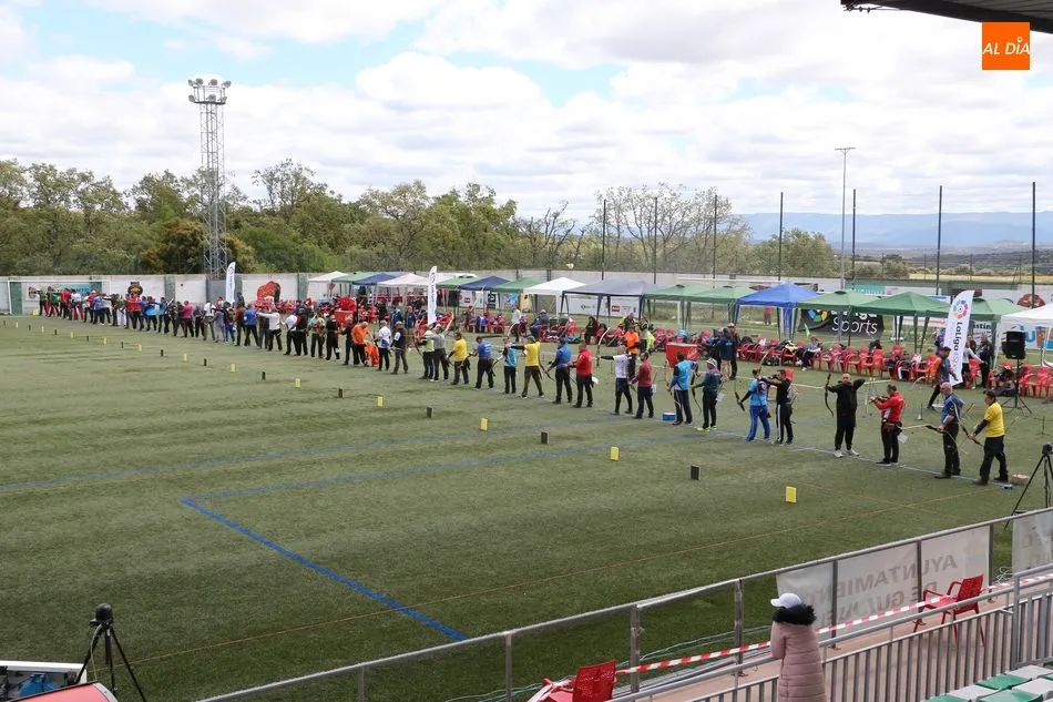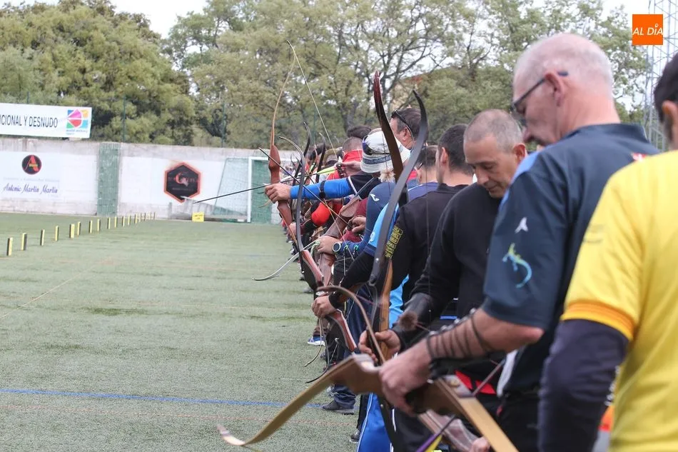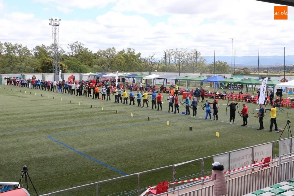 El campo municipal de fútbol de Guijuelo se convirtió ayer en escenario del Campeonato de Tiro con Arco de España en las modalidades arco instintivo, long bow y arco desnudo. Durante toda la jornada se disputaron las eliminatorias con más de 150 arqueros venidos de toda España, con especial presencia de arqueros de Castilla y León, Madrid y Andalucía. Por la mañana fue el turno de las rondas previas y los dieciseisavos de final de arco instintivo, mientras que por la tarde se repitió la misma operación para long bow y arco desnudo.