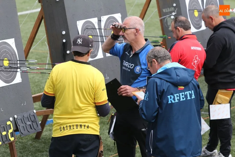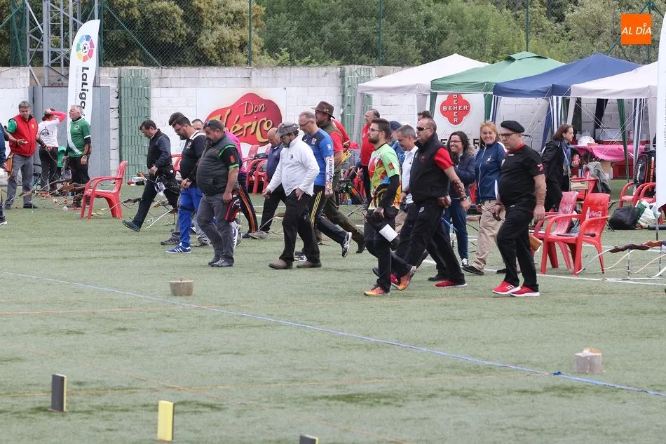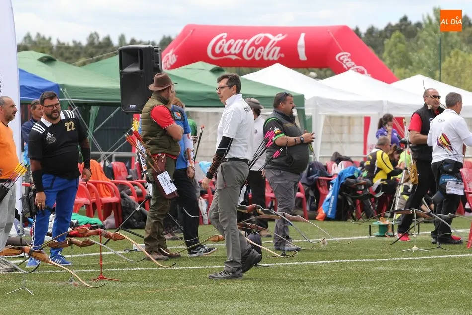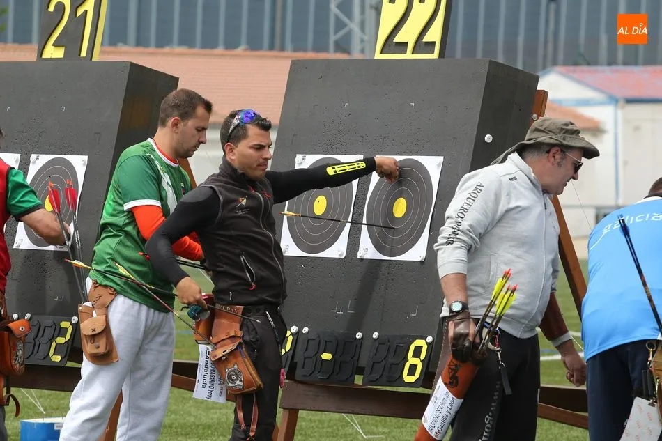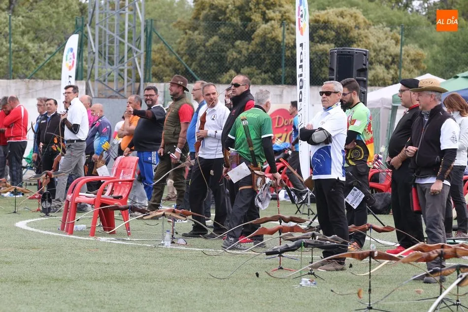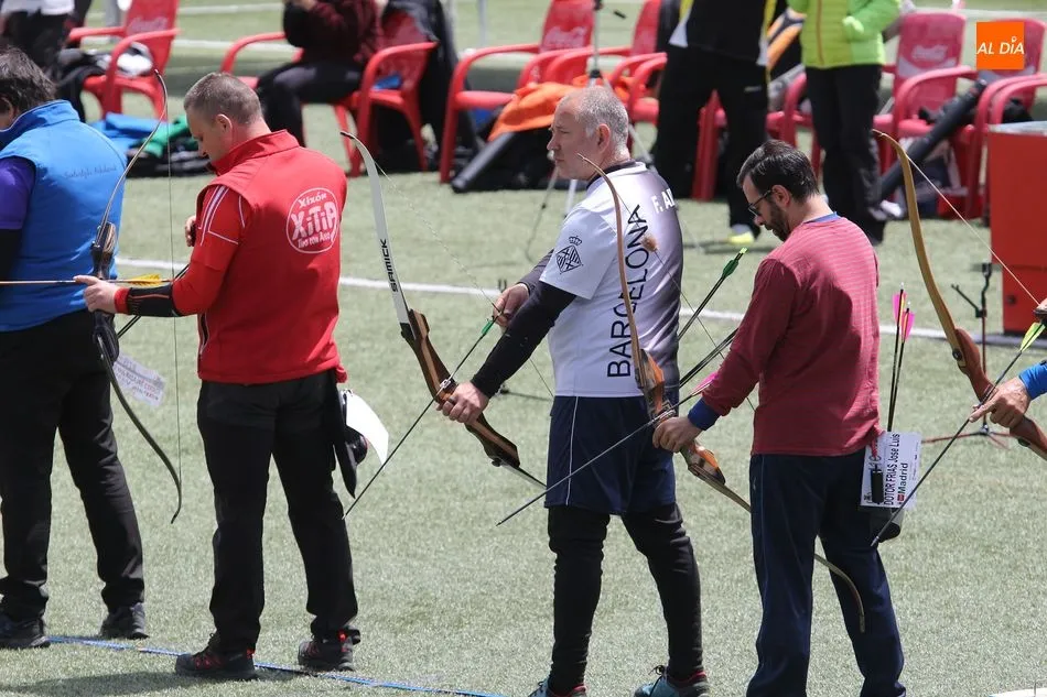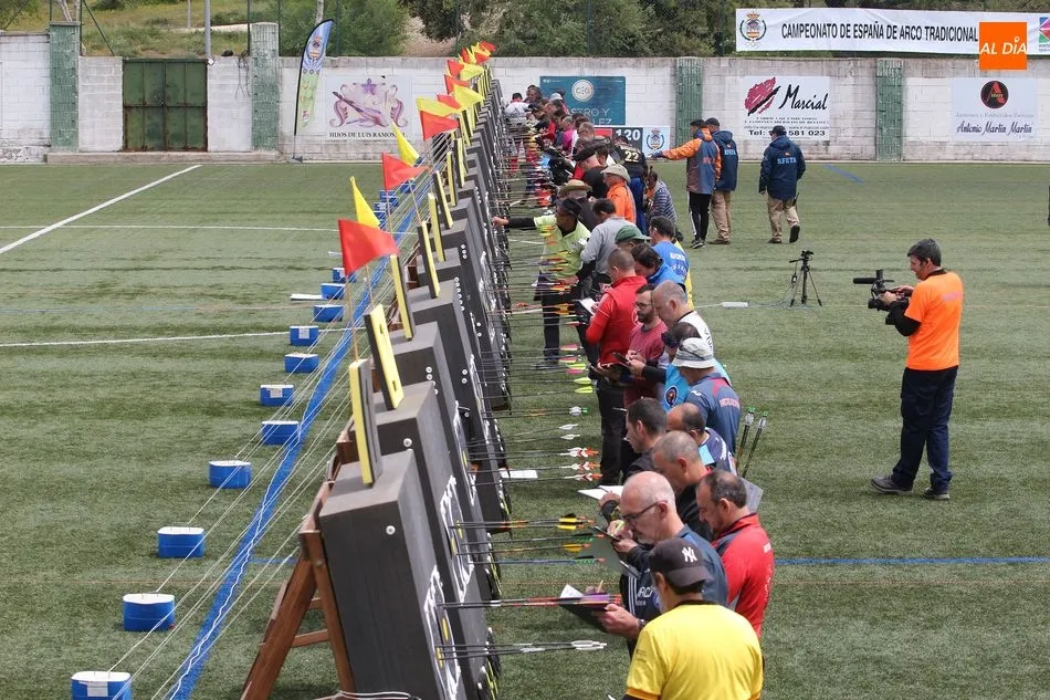 El campo municipal de fútbol de Guijuelo se convirtió ayer en escenario del Campeonato de Tiro con Arco de España en las modalidades arco instintivo, long bow y arco desnudo. Durante toda la jornada se disputaron las eliminatorias con más de 150 arqueros venidos de toda España, con especial presencia de arqueros de Castilla y León, Madrid y Andalucía. Por la mañana fue el turno de las rondas previas y los dieciseisavos de final de arco instintivo, mientras que por la tarde se repitió la misma operación para long bow y arco desnudo.
