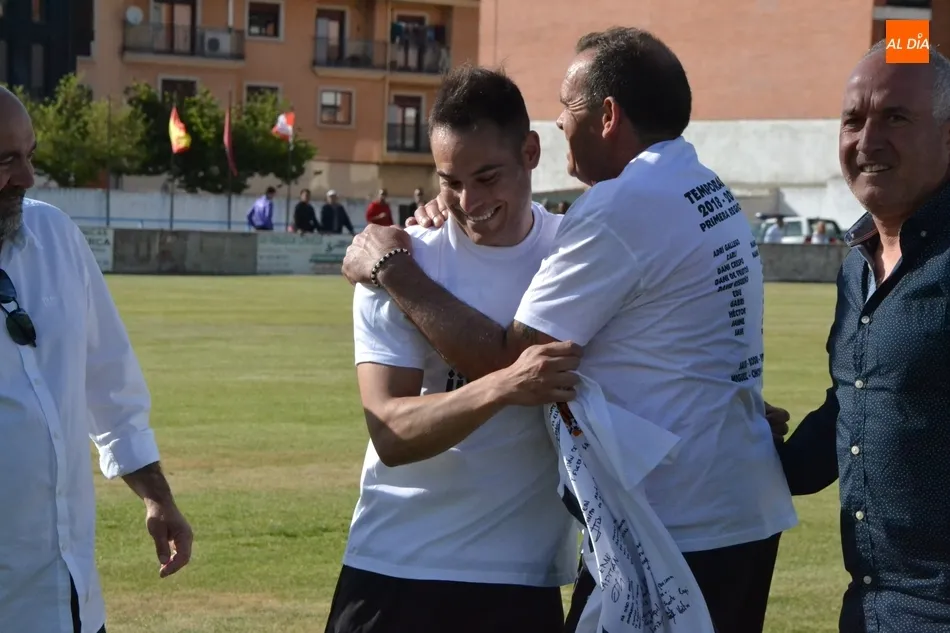 Finalizado el encuentro, todos los jugadores salieron al campo a saludar a la afición, aprovechando para mantear a Víctor, quién a continuación apuró sus últimos instantes sobre el césped del Francisco Mateos con la camiseta del Ciudad Rodrigo puesta realizándose unas cuantas fotos con amigos, con su familia (tras un emotivo abrazo con su madre), así como con ?el futuro?, es decir, con jugadores del Juvenil que ahora deberían darle el relevo tanto en el juego como en el liderazgo.