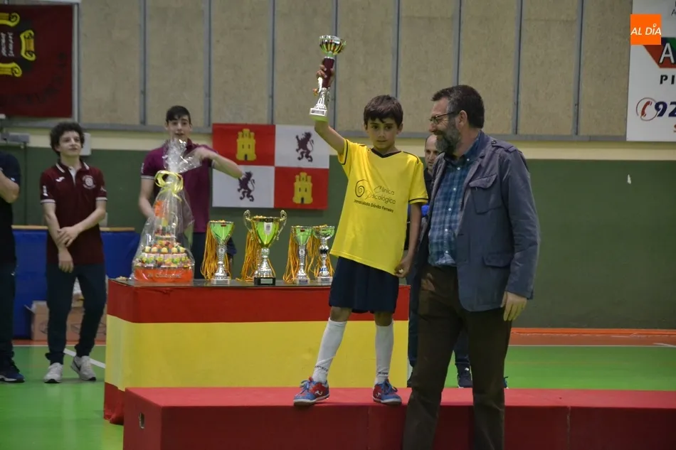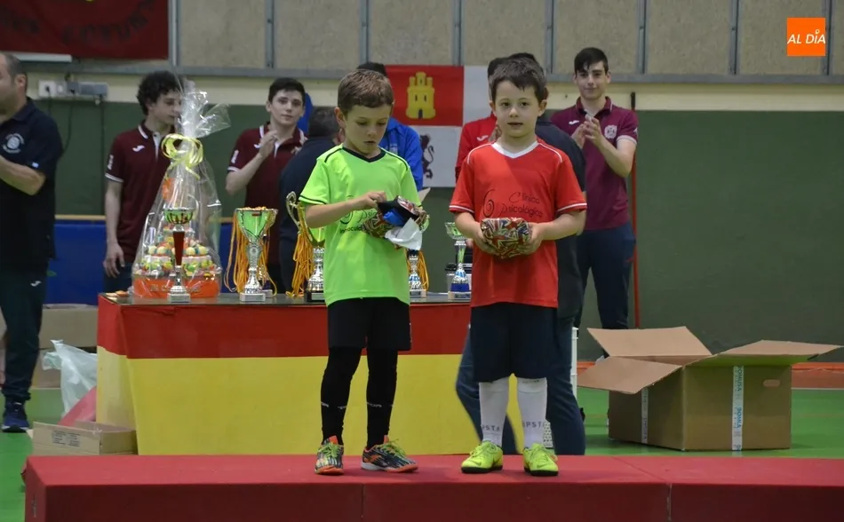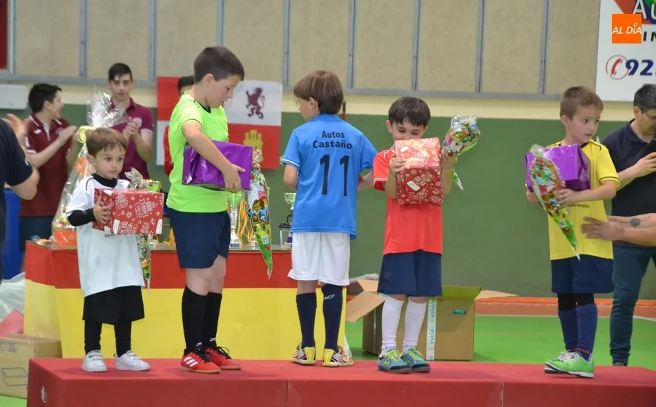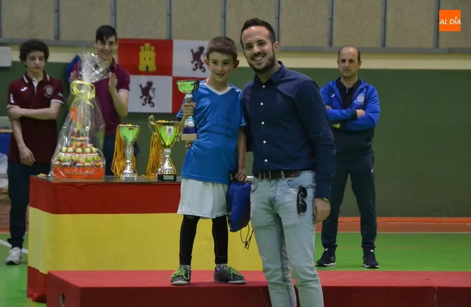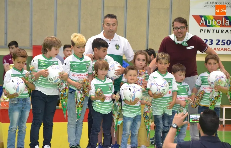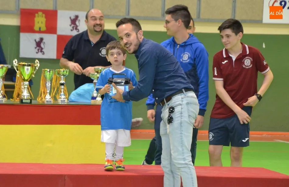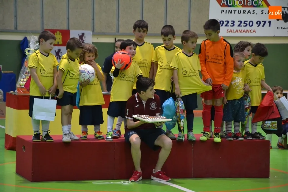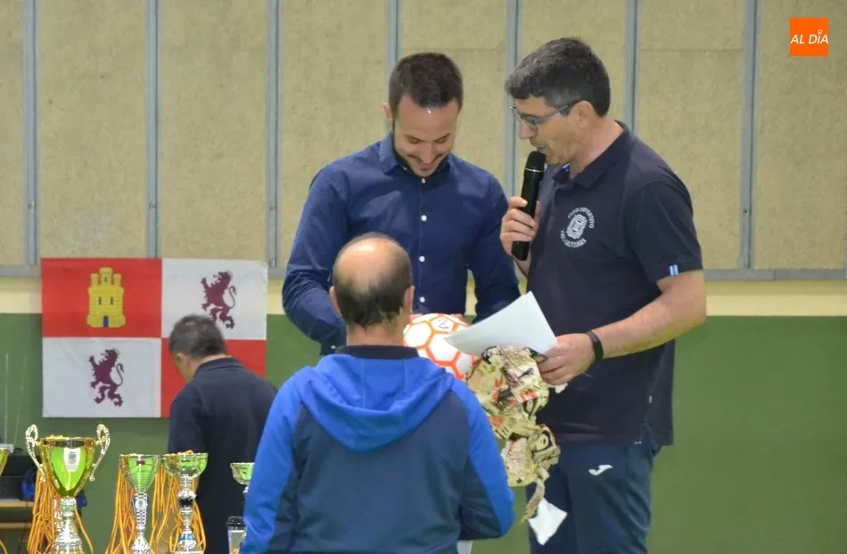 La ceremonia continuó con los reconocimientos especiales, empezando por Saúl Hernández Muñoz como jugador más pequeño de la Liga (recibió como obsequio el clásico pez). A continuación, fue reconocido como equipo más deportivo Motoval, con la habitual tarta con su foto; y se entregaron los premios al mejor jugador, Rodrigo Martín Lucas, de Motoval; y al máximo goleador, Sergio Durán Martín, de Autos Castaño (con 19 tantos).
