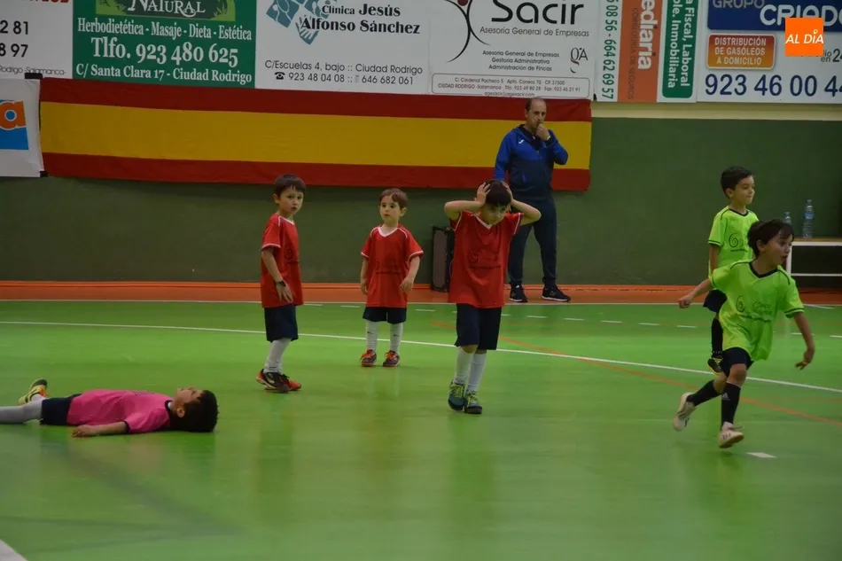 El Pabellón de la Avenida Conde de Foxá de Ciudad Rodrigo vivió durante la tarde del domingo uno de sus momentos más especiales de cada año: la jornada de finales de la Liga Comarcal Prebenjamín que organiza el III Columnas, que hace que el recinto se llene prácticamente a rebosar de familiares de los más de 50 pequeños participantes, nacidos en esta ocasión en los años 2013, 2014 y 2015.