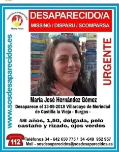 Se trata de María José Hernández Gómez, de 46 años, 150 centímetros de estatura ,ojos verdes, pelo castaño y rizado y complexión delgada, que desapareció en el citado municipio burgalés el pasado 13 de mayo.