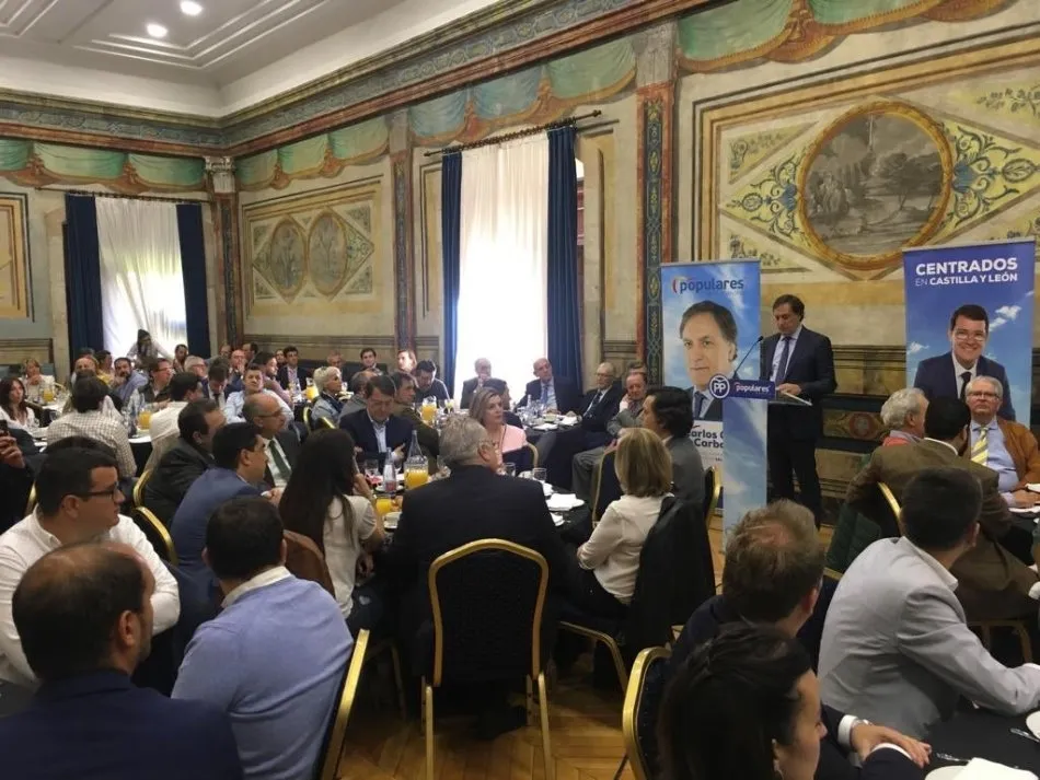 Fernández Mañueco ha estado acompañado en este foro por el presidente del PP de Salamanca, Javier Iglesias, y su candidato a la Alcaldía de la capital y actual regidor, Carlos García Carbayo.