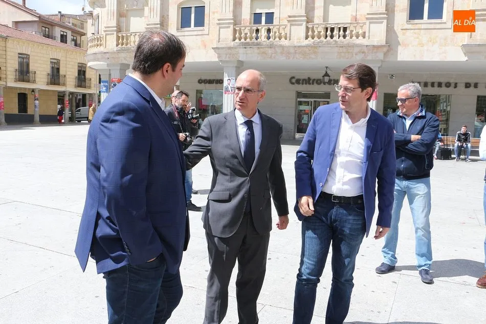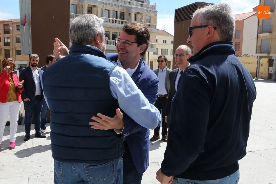 El candidato a la presidencia de la Junta de Castilla y León visitó la villa en la última jornada de campaña para arropar al candidato local del Partido Popular