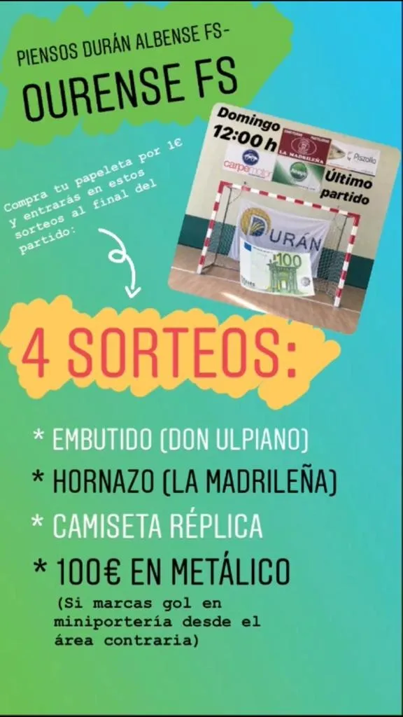 El Piensos Durán Albense despide este domingo (12:00 horas) la competición en el Municipal de Alba de Tormes recibiendo al Sala Ourense, equipo que le aventaja en dos posiciones y cuatro puntos, por lo que la undécima posición para los albenses no se verá afectada pase lo que pase.