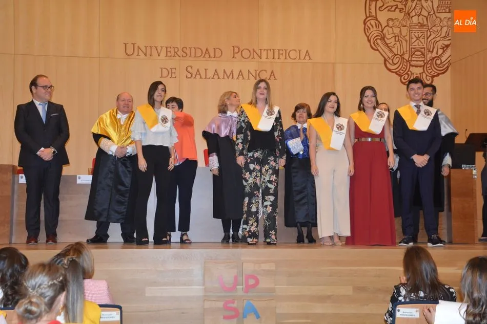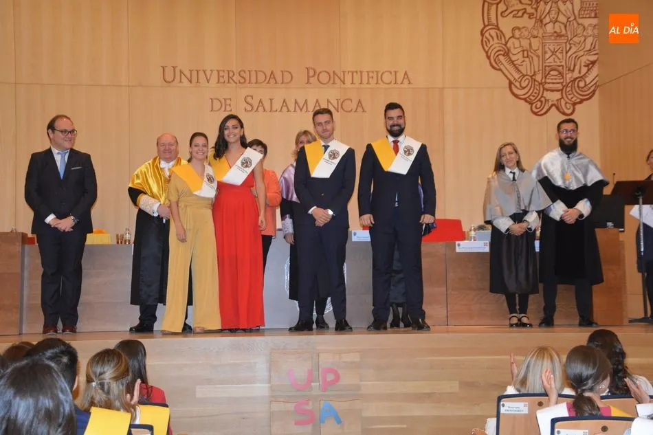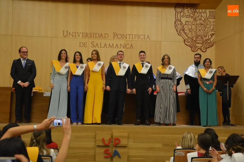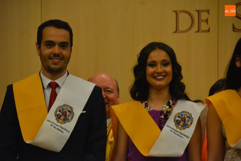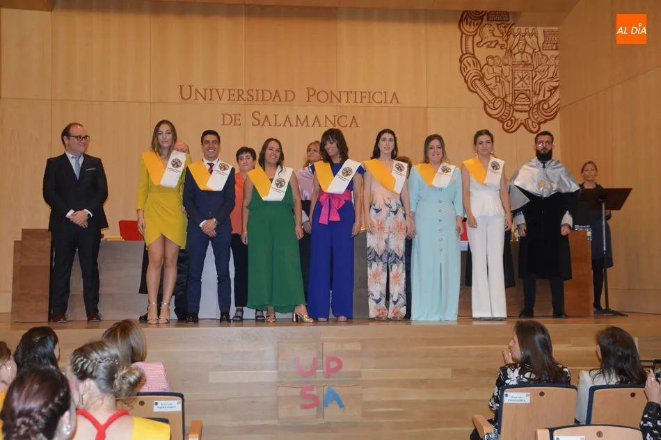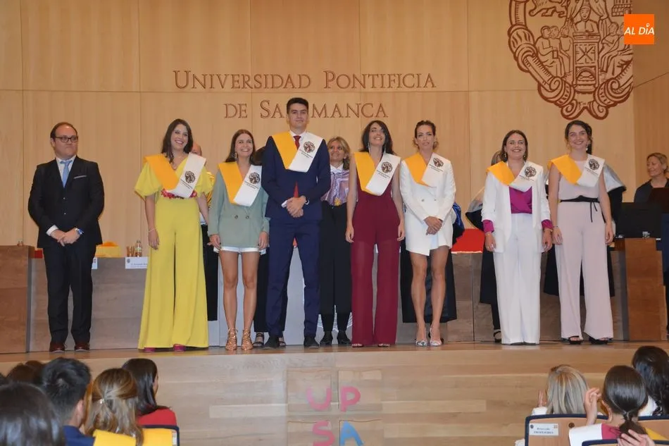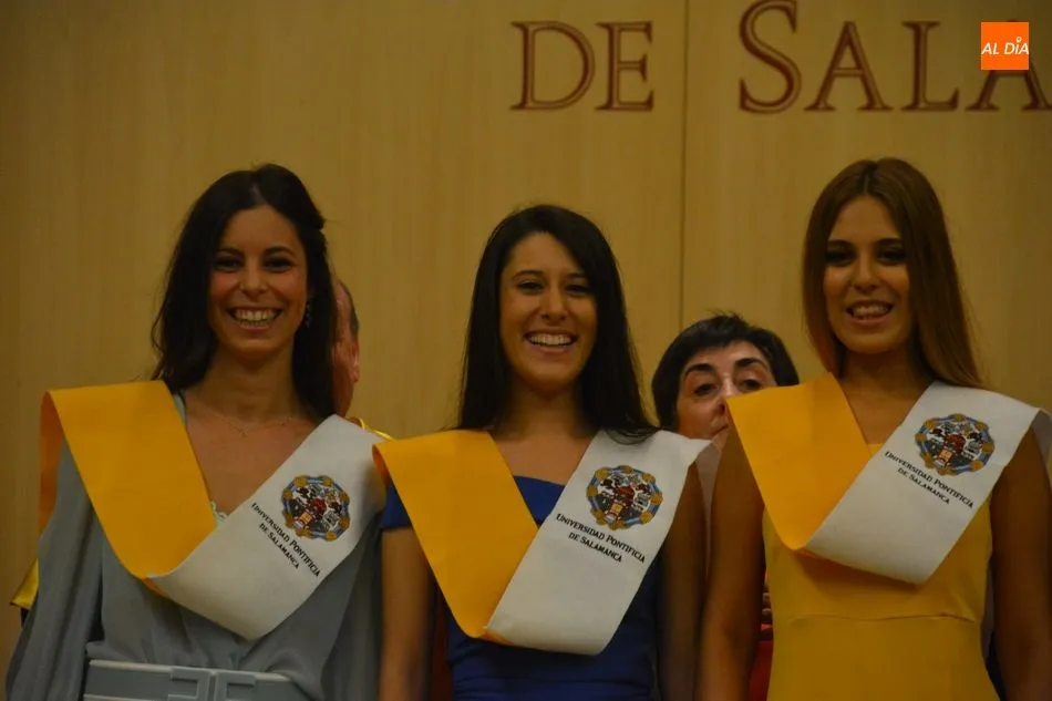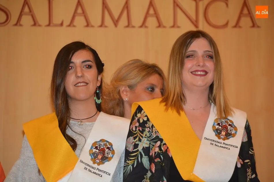 La Universidad Pontificia de Salamanca vive una ajetreada mañana de graduaciones. En el caso de la Facultad de Enfermería, son dos grupos los que han participado en la imposición de banda