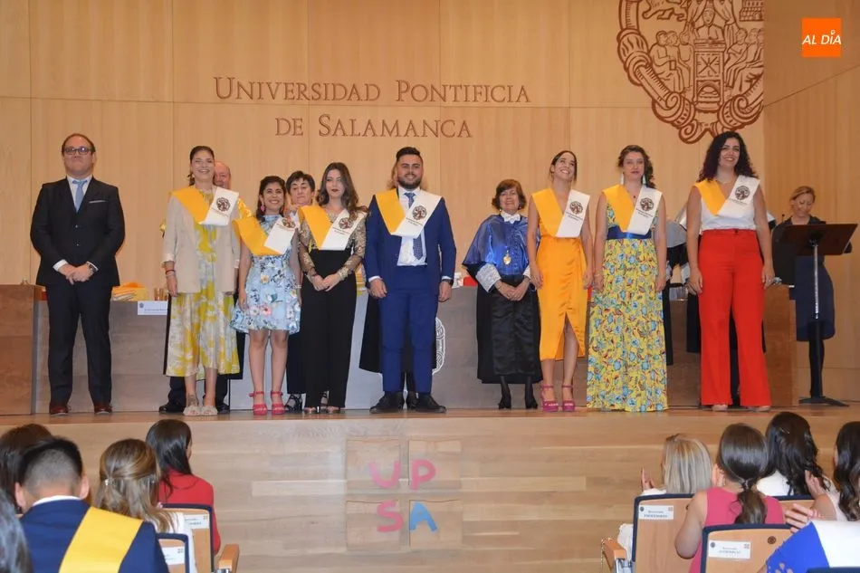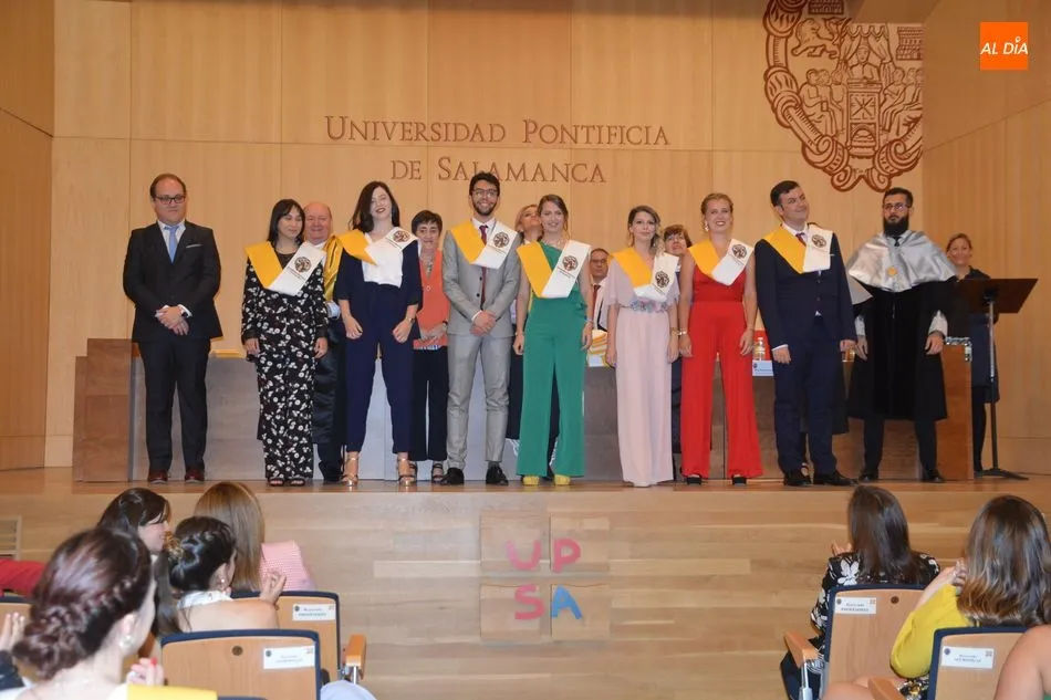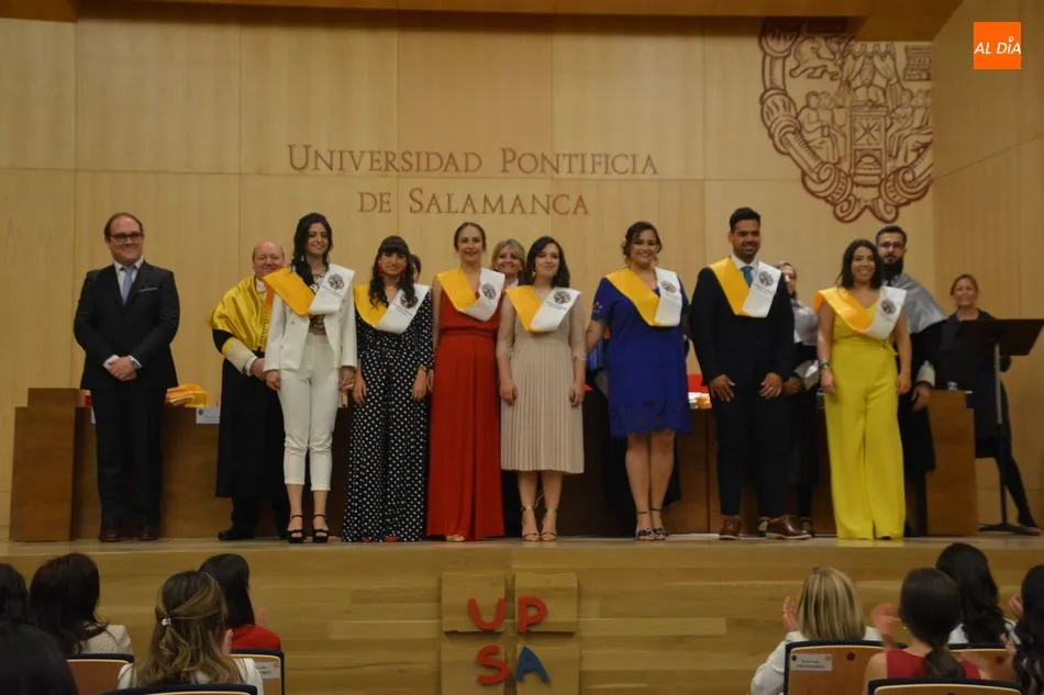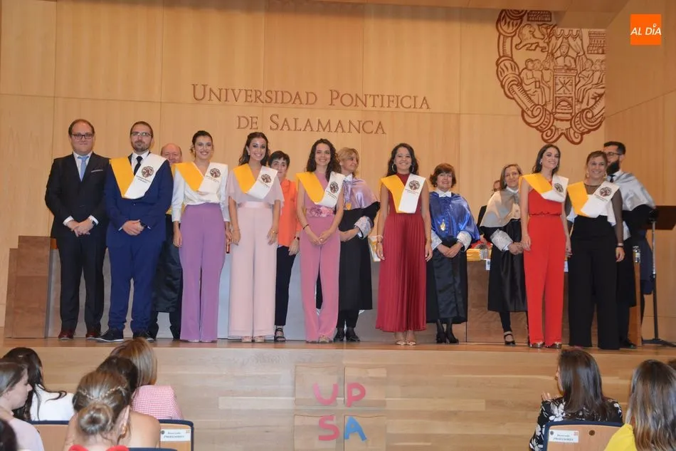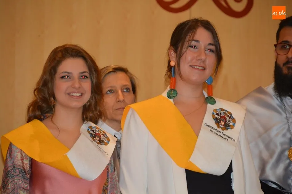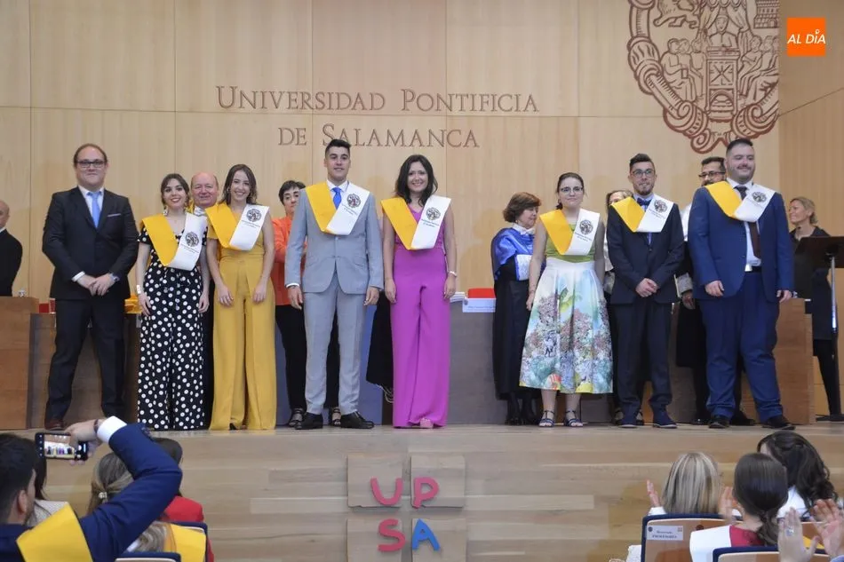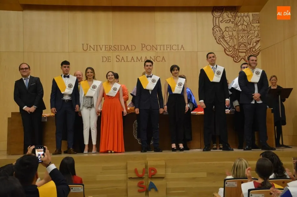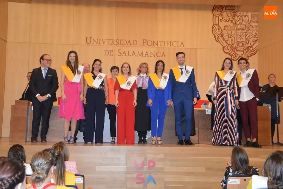 La Universidad Pontificia de Salamanca vive una ajetreada mañana de graduaciones. En el caso de la Facultad de Enfermería, son dos grupos los que han participado en la imposición de banda