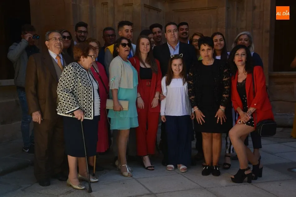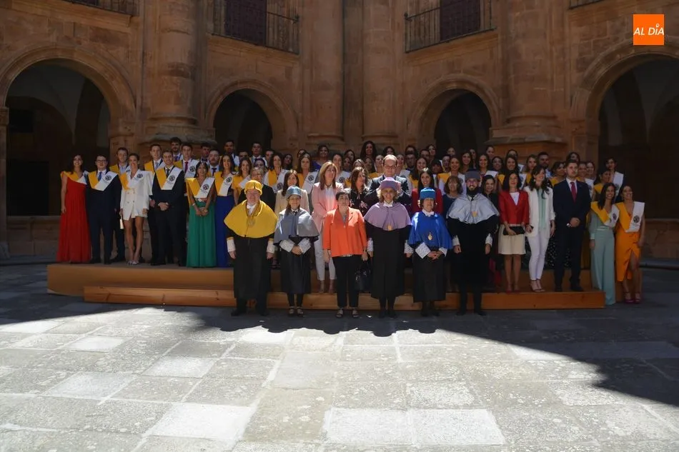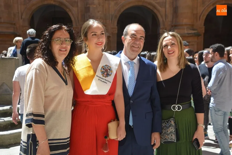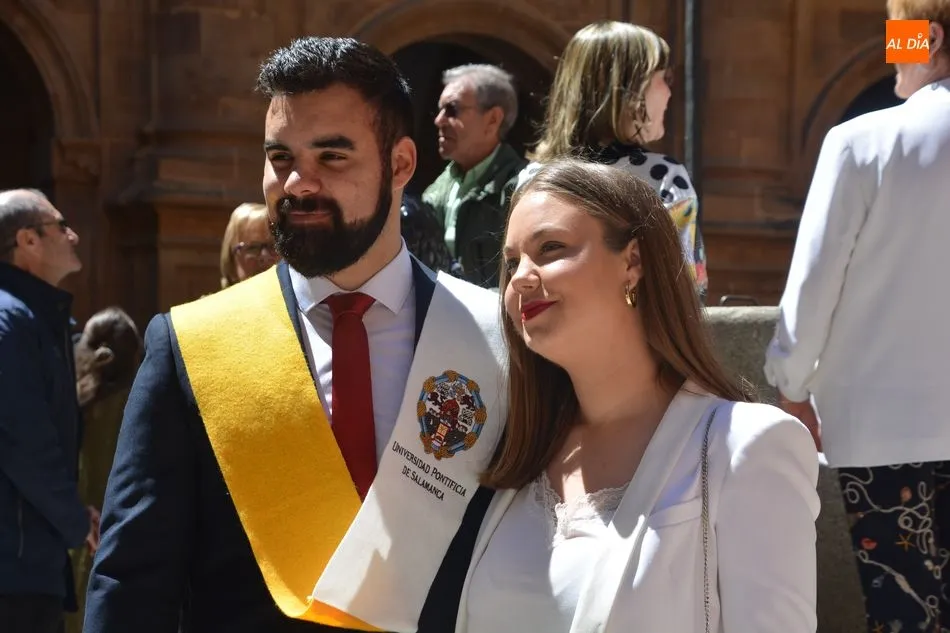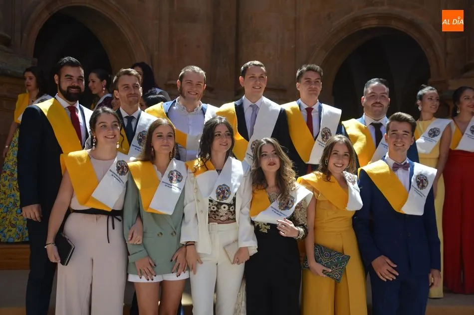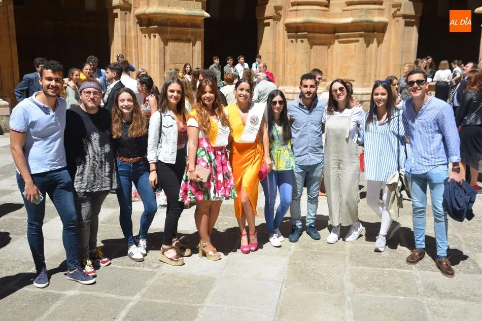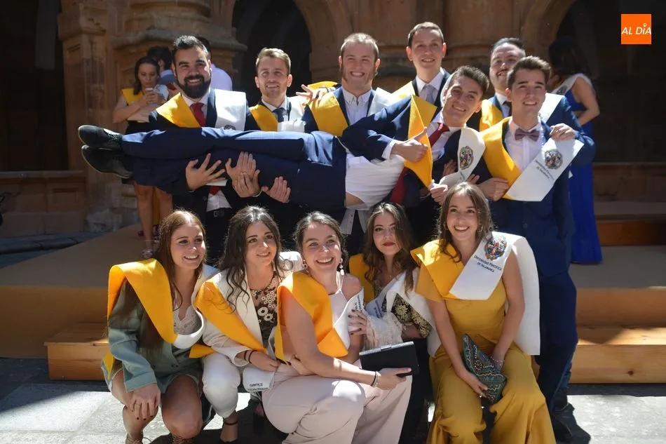 s celebrando el final de sus estudios. Los Grupos A y B de esta carrera se han citado en el Auditorio San Juan Pablo II y más tarde han posado para la tradicional foto en el Patio Barroco.