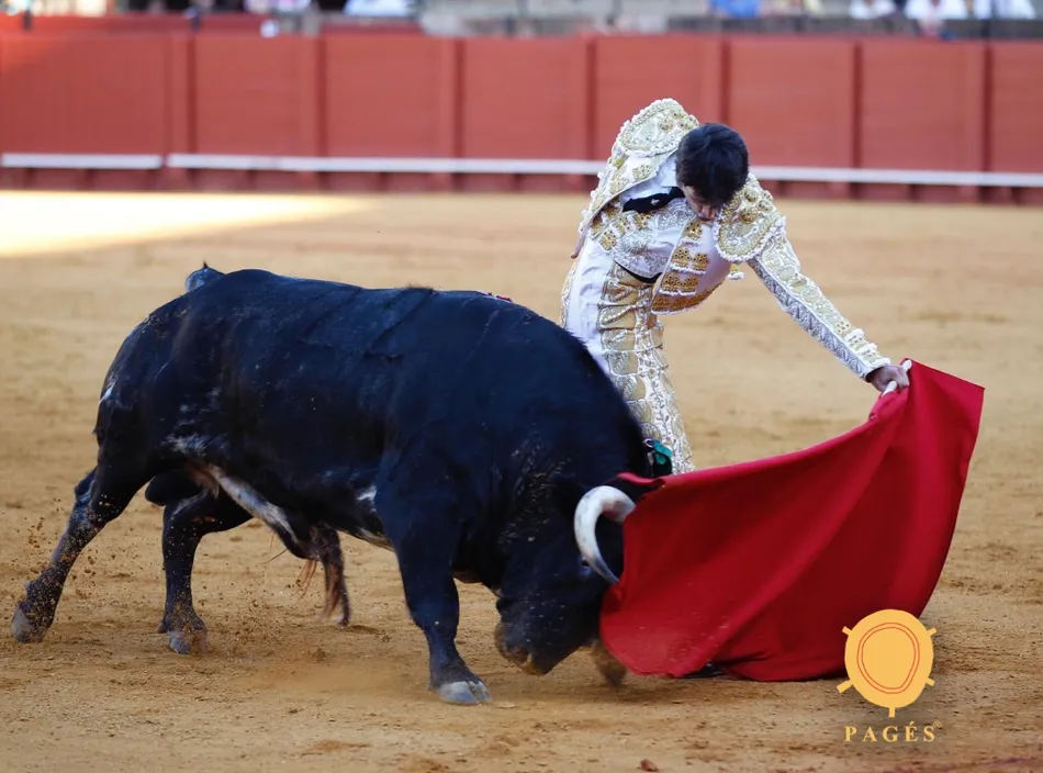 novillo era algo tardo pero el salmantino supo dejarle la muleta puesta para que no parara. Ahí estuvo la clave de las dos primeras series diestras, ligadas y acompañadas por la música. Al natural el novillo empezó a pararse más y la faena bajó un poco en intensidad. Mató de media y hubo petición de oreja que el palco no atendió.