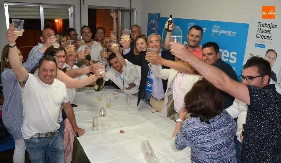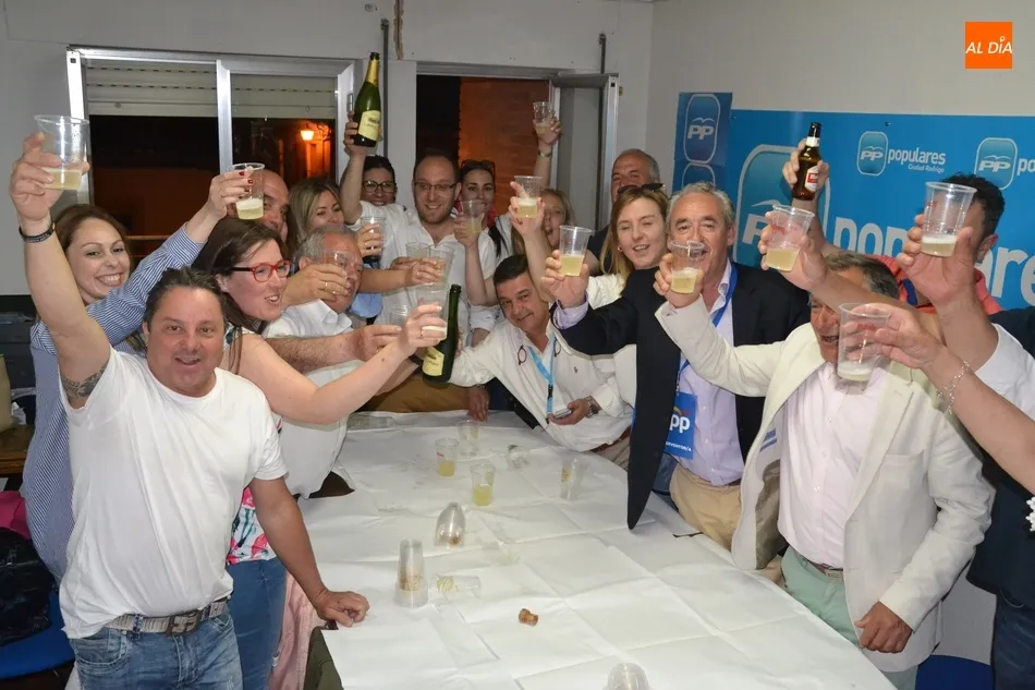 Evidentemente, nada más conocerse que conseguían la mayoría absoluta, se desató la fiesta en la sede del Partido Popular, descorchando cava y partiendo jamón, y sucediéndose las felicitaciones según iban llegando hasta allí los apoderados e interventores que habían tenido repartidos por los colegios electorales.