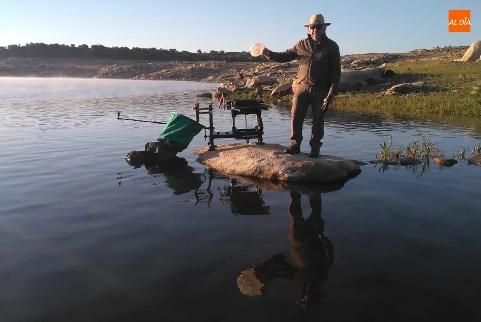 Integrantes de la Sociedad Charra de Caza y Pesca, amantes de la técnica al coup, disfrutaban de la pesca hace unos días en el embalse de Almendra, concretamente en el mismo cauce del río Tormes, entre Villaseso de los Reyes y Carbellino.