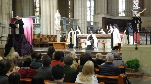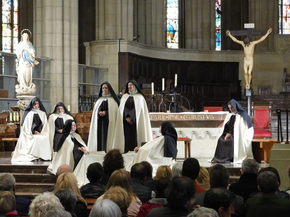 Los distintos cuadros escénicos de la obra se mueven en torno al debate que estas carmelitas, hermanas de Teresa, entablan con un enviado de la Inquisición que encaramado en su púlpito denosta la vida y obra de su Madre, sospechosa de herejía para el Santo Oficio al que representa y que allí le ha enviado. Suena como cómplice acompañante un órgano que emite bellas notas de música renacentista y que salen de las manos del músico ciego Salinas. En torno a tan sencillo a la vez que elegante atrezzo, elaborado también por los componentes del grupo de teatro, nacen con frescura, no exenta de ironía y coraje, unos diálogos, rápidos pero profundos, duros a la vez que humanos. La vida y obra de aquella carmelita valiente, lúcida y moderna en todos los aspectos que de sí se proyectan en escena, llegan al público que siempre acaba entregándose a la mejor de sus dimensiones, la de mujer, intelectual y espiritual, mística pero con los pies en la tierra.