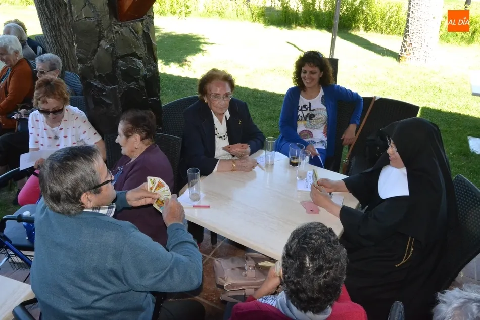 La zona ajardinada del Hotel Conde Rodrigo II fue escenario en la jornada del martes de una fiesta de la Residencia de las Hermanitas de los Ancianos Desamparados (conocida popularmente como San José), en la que fueron protagonistas los propios residentes, con quienes todos los años se intenta vivir un día lúdico de excursión fuera de la propia Residencia.