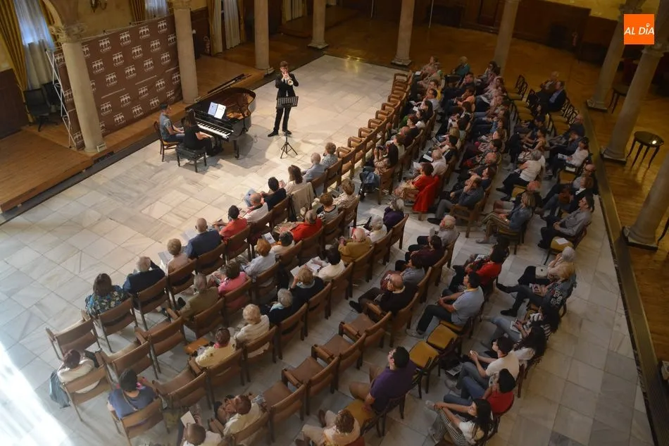 El Casino de Salamanca acogió esta tarde uno de los últimos conciertos de fin de estudios a cargo de los alumnos del Conservatorio de Música de Salamanca. En esta ocasión, el recital de fin de estudios estuvo protagonizado por los alumnos Álvaro Aguilar Antón (trompa) y Pablo Pérez Hernández (trompeta) quienes estuvieron acompañados también al piano por la profesora Eloísa de Guzmán. El programa que presentaron es el siguiente: