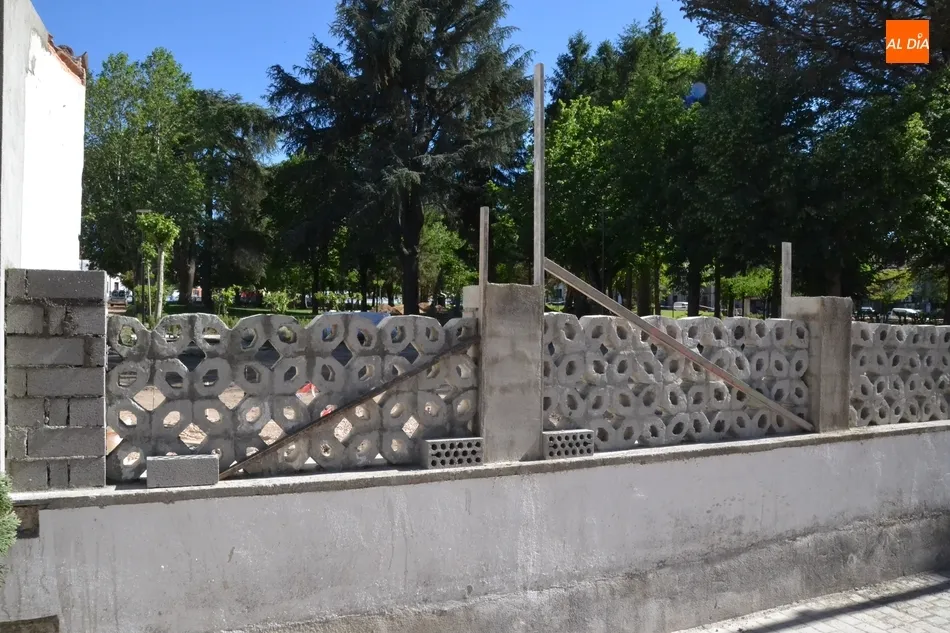 Como es lógico, tras este derribo había que intervenir de alguna forma en ese tramo, decidiéndose reconstruir el muro tal y como está el del resto del Parque (excepto el lateral que da a la Avenida de España). En este sentido, sobre el bloque inferior de baja altura se está empezando a configurar ?pieza a pieza? la estructura en forma de mosaico del resto del recinto.
