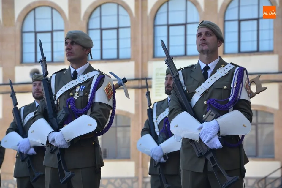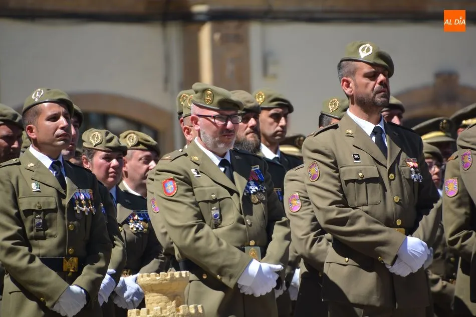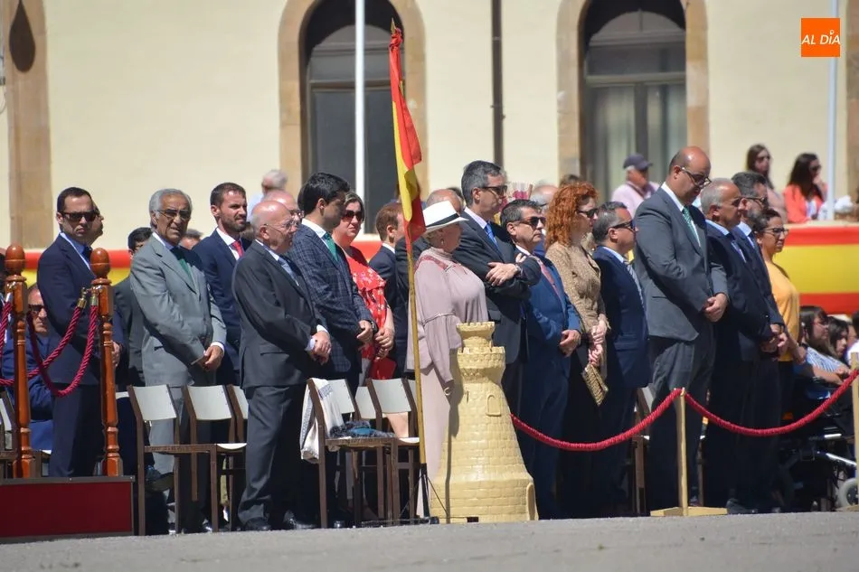 La festividad de San Fernando, patrón del Arma de Ingenieros, se ha celebrado este jueves en el Acuartelamiento General Arroquia con la tradicional parada militar. Unos actos a los que asistían algunas autoridades locales, como los concejales Fernando Rodríguez y Enrique Sánchez-Guijo.
