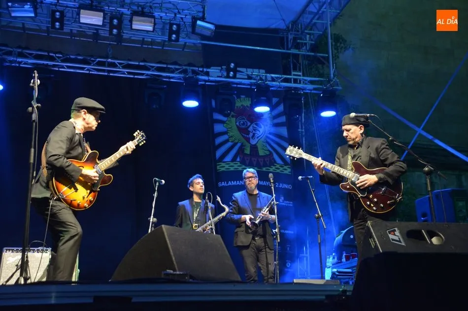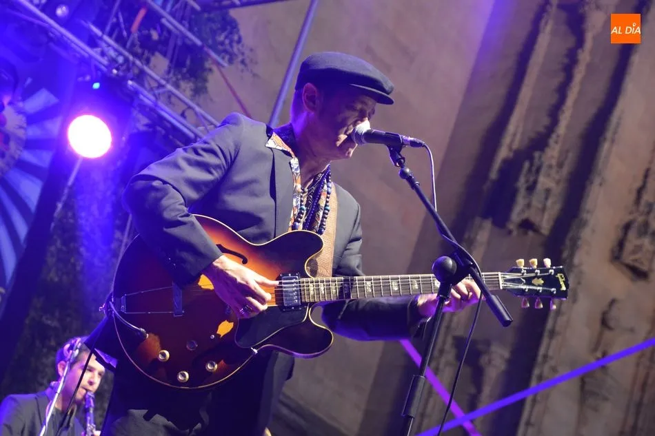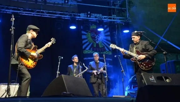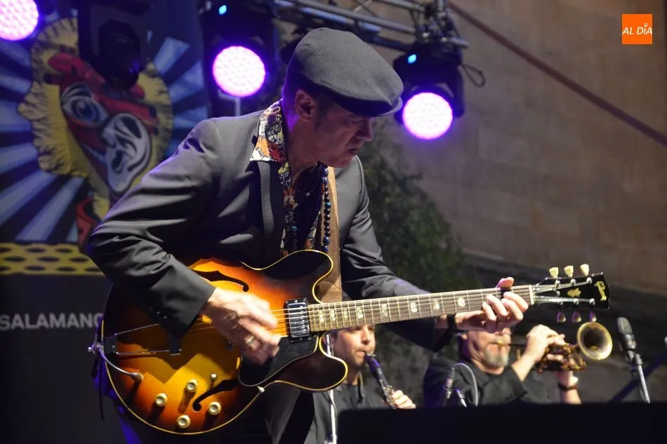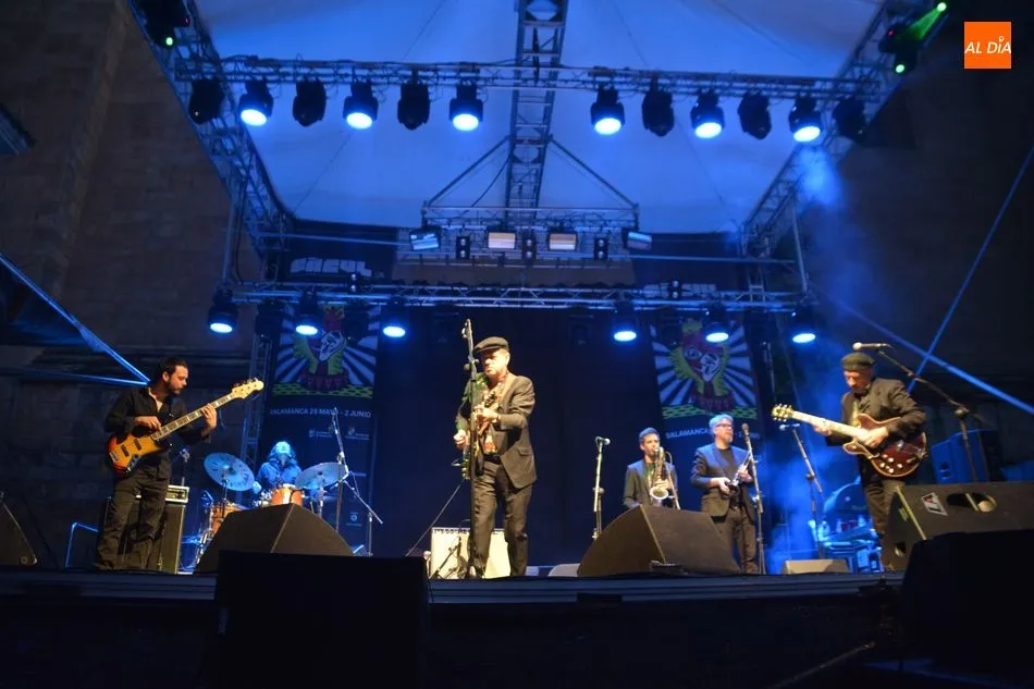 El mítico Santiago Auserón se ha subido con su banda al escenario de la plaza Anaya para demostrar que la emoción poética, el humor dispuesto a la invención en cada tema, la pulsión del baile y la hondura en la interpretación son las características de esta formación musical de primer nivel.