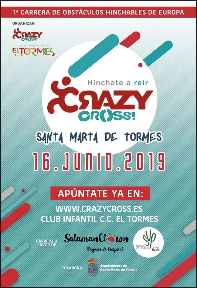 El próximo 16 de junio llega a Salamanca la loca carrera de obstáculos hinchables: El Tormes Crazy Cross, una divertida prueba organizada por el Centro Comercial El Tormes y Crazy Cross con la colaboración del Ayuntamiento de Santa Marta de Tormes.