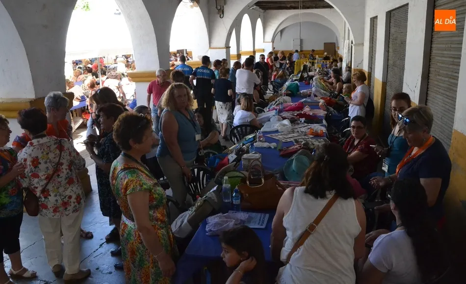 La mañana transcurrió a buen ritmo a medida que iba aumentando el calor. Ya en el tramo final de la mañana se pasaron por la Plazuela varios miembros de la Corporación Municipal encabezados por el alcalde en funciones, Juan Tomás Muñoz, así como el Vicario General de la Diócesis, Tomás Muñoz Porras (la Diócesis cede unos locales para que las organizadoras guarden todo el material).