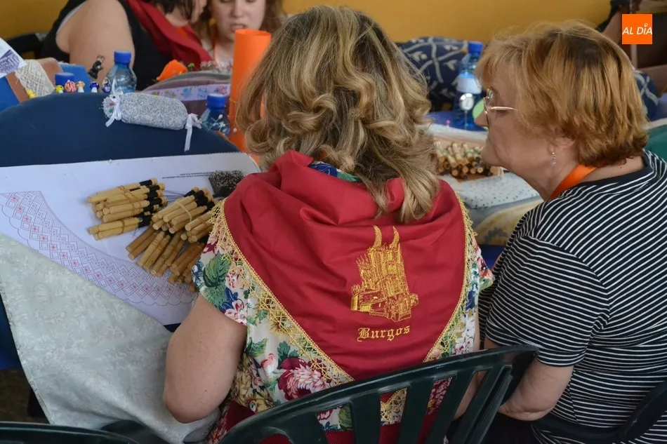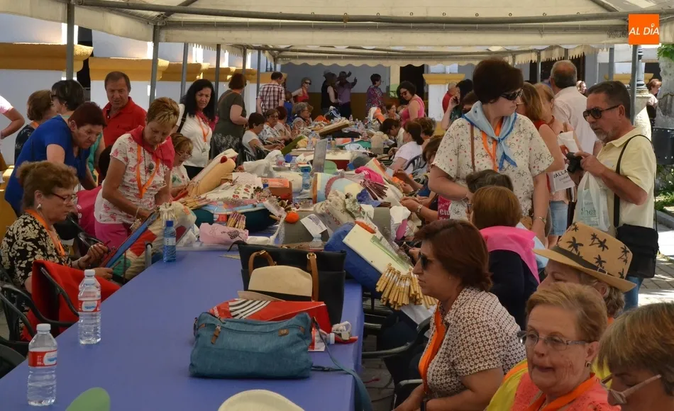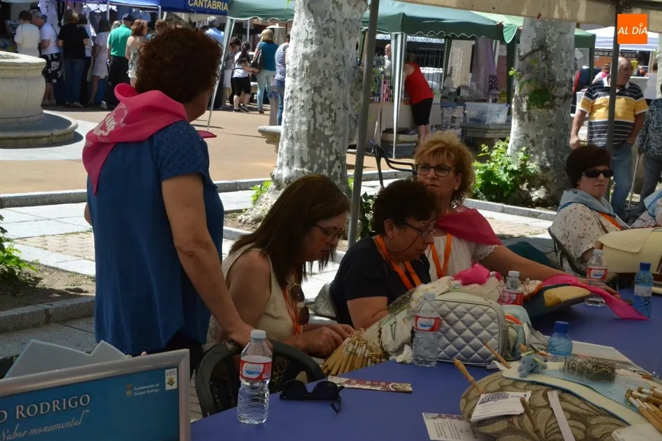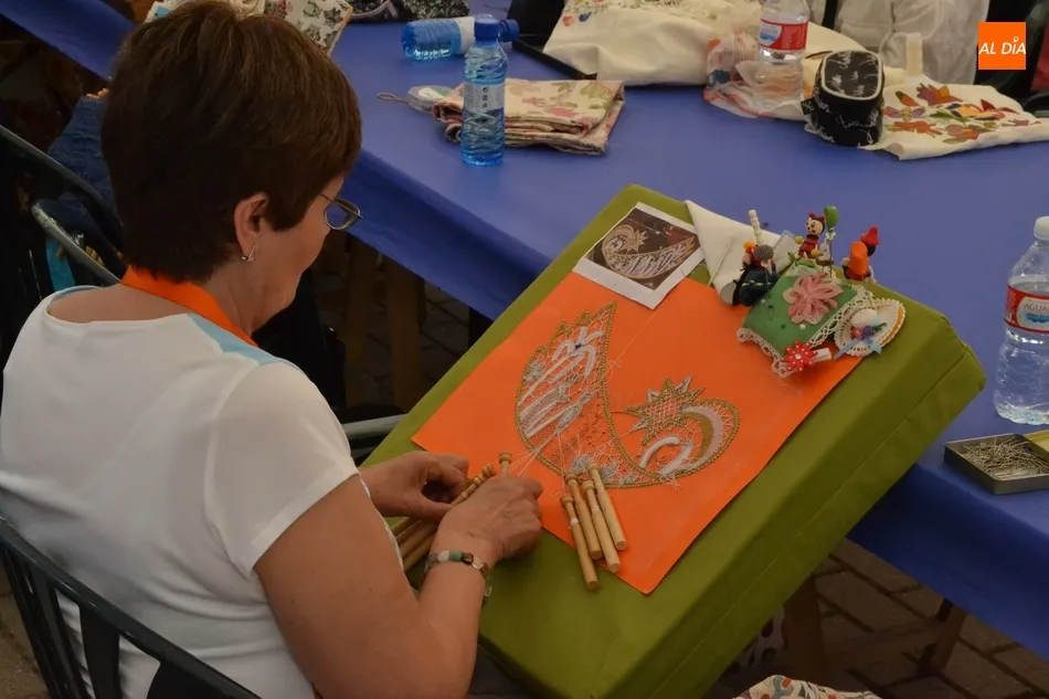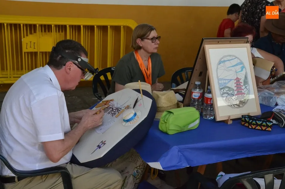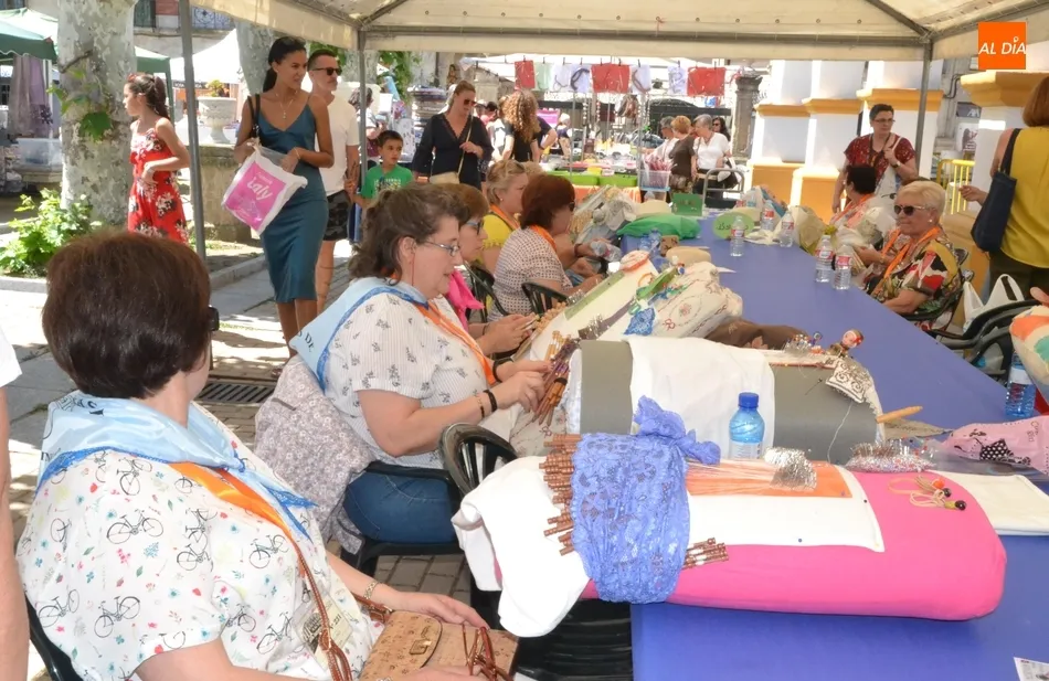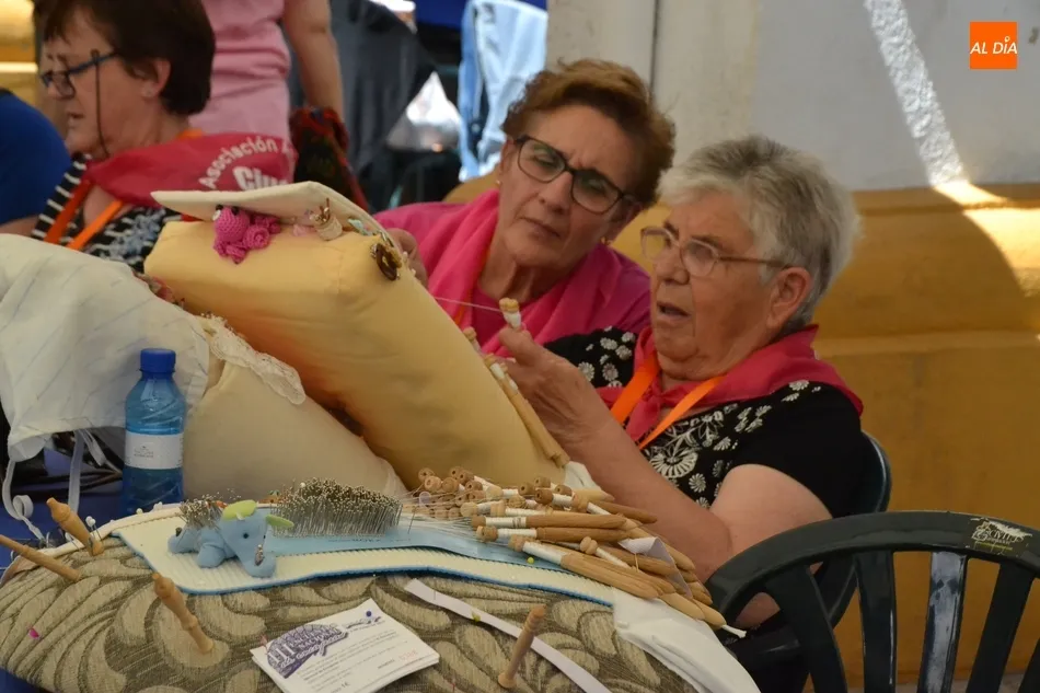 El sábado empezó muy pronto para las 8 organizadoras del evento, las bolilleras mirobrigenses Tere Iglesias, Tere Ramos, María José López, Bene Ojos, Marife Bernal, Puri Blanco, Maribel Zamarreño y Fermí García, que junto a varios voluntarios (y un par de trabajadores del Ayuntamiento) madrugaron para que todas las mesas y sillas estuviesen desplegadas bajo las carpas colocadas el jueves y bajo los soportales de la Plazuela del Buen Alcalde.