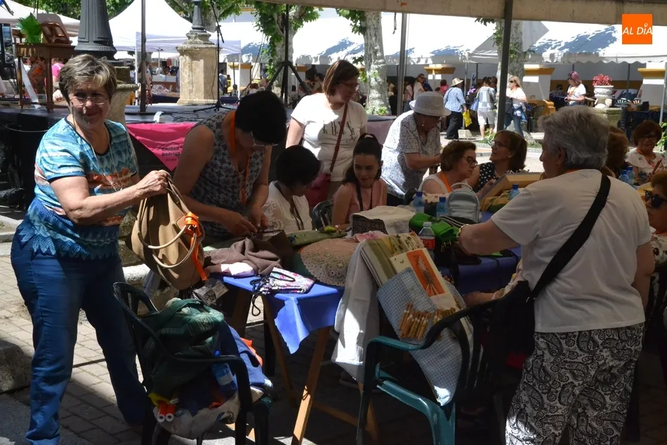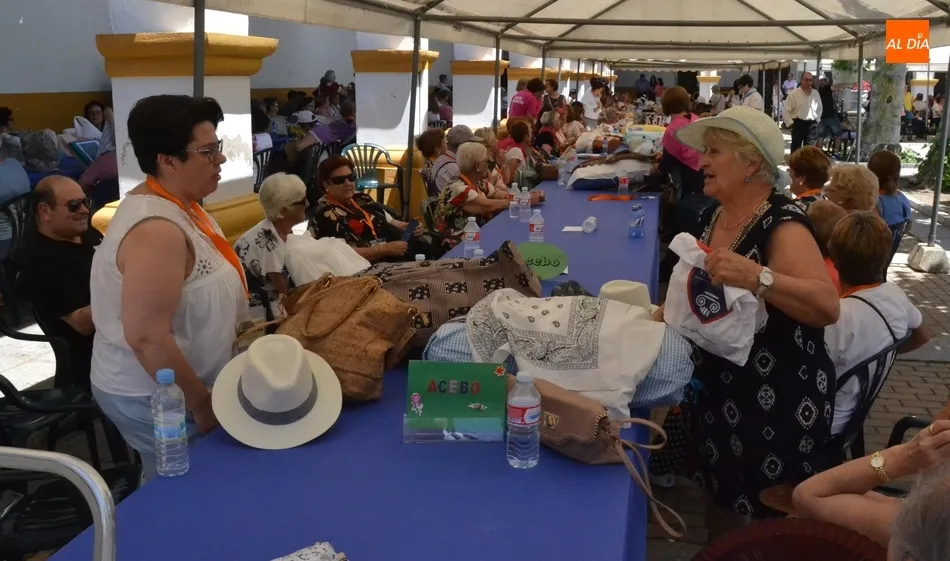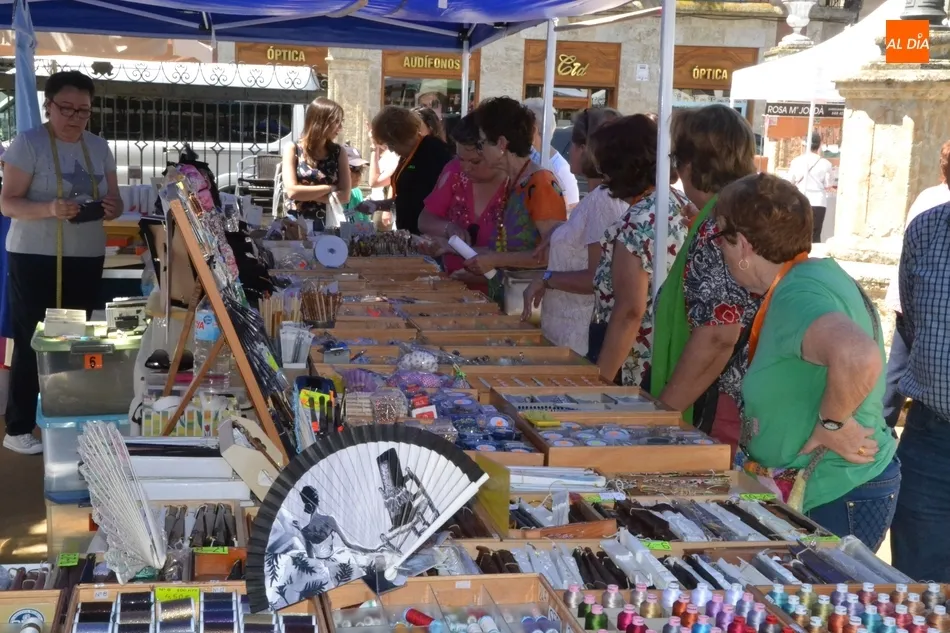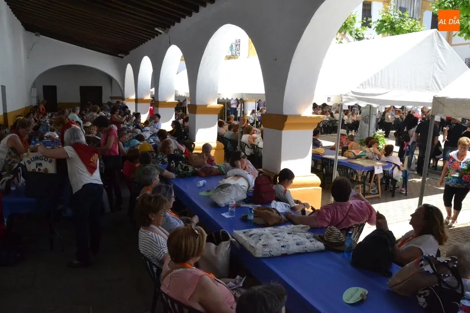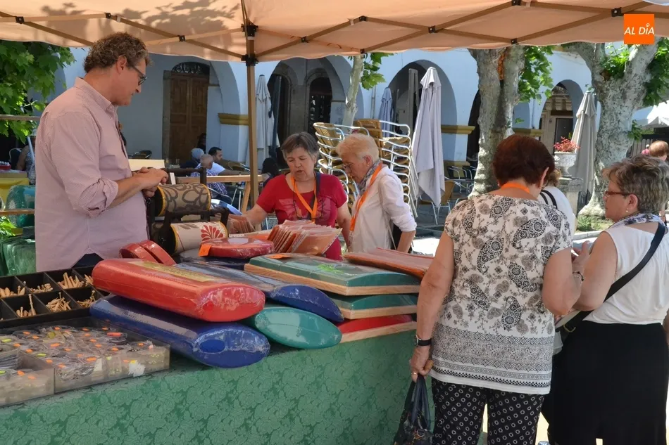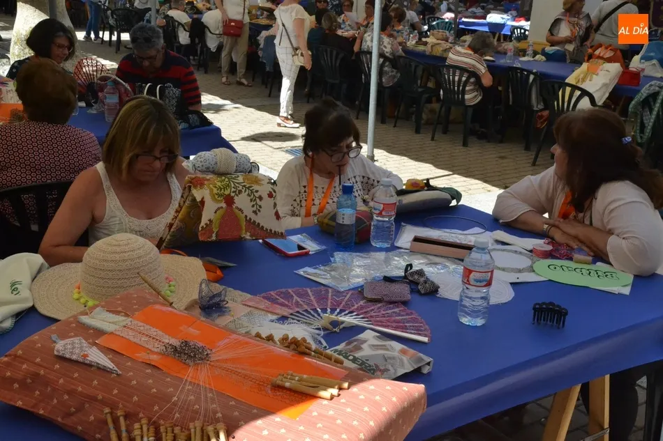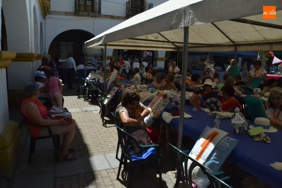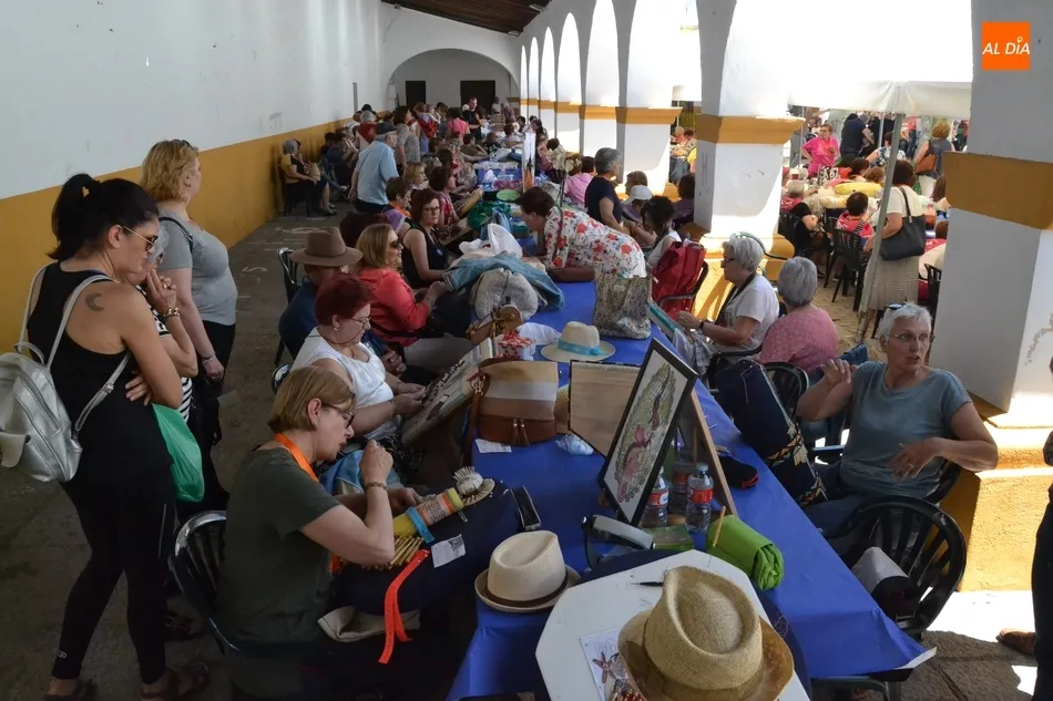 El sábado empezó muy pronto para las 8 organizadoras del evento, las bolilleras mirobrigenses Tere Iglesias, Tere Ramos, María José López, Bene Ojos, Marife Bernal, Puri Blanco, Maribel Zamarreño y Fermí García, que junto a varios voluntarios (y un par de trabajadores del Ayuntamiento) madrugaron para que todas las mesas y sillas estuviesen desplegadas bajo las carpas colocadas el jueves y bajo los soportales de la Plazuela del Buen Alcalde.