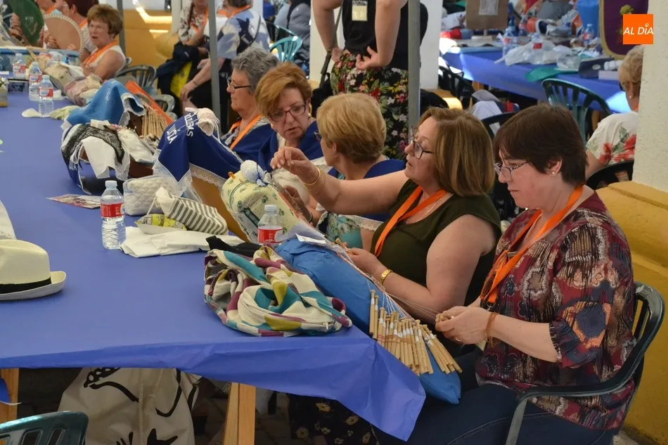 Para abrir la mañana, todos los inscritos pudieron desayunar en la Plazuela, antes de empezar a darle a los bolillos en los sitios asignados, a recorrer la decena de puestos comerciales de productos de bolillos desplegados por la Plazuela (se ha aprovechado el cambio de suelo de la zona central del ágora para distribuirlos de otra forma), a visitar la exposición de trabajos de la Asociación Amanecer en la Casa de la Cultura, o a conocer la ciudad mediante una visita guiada.