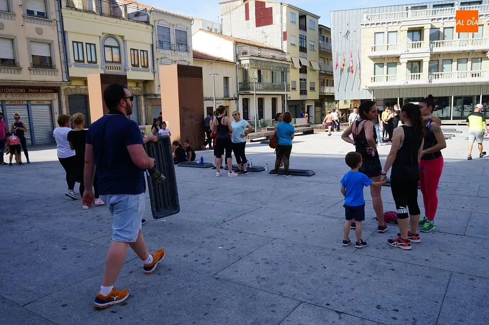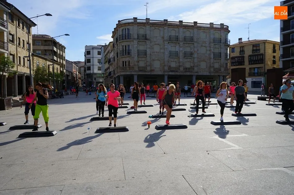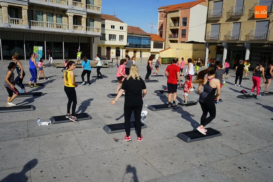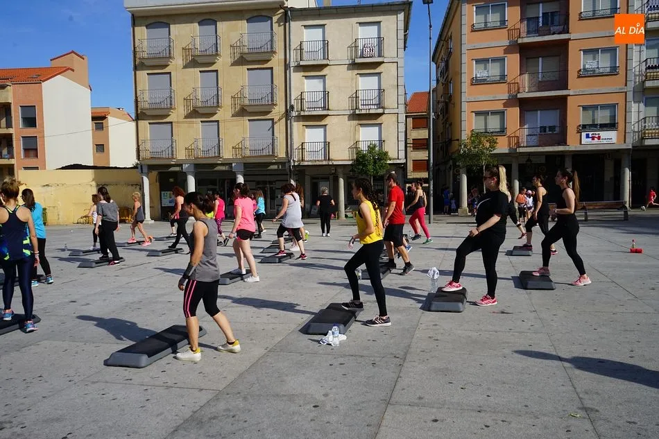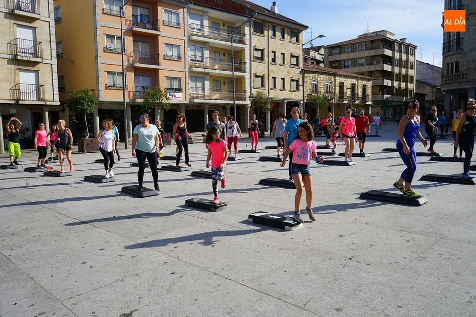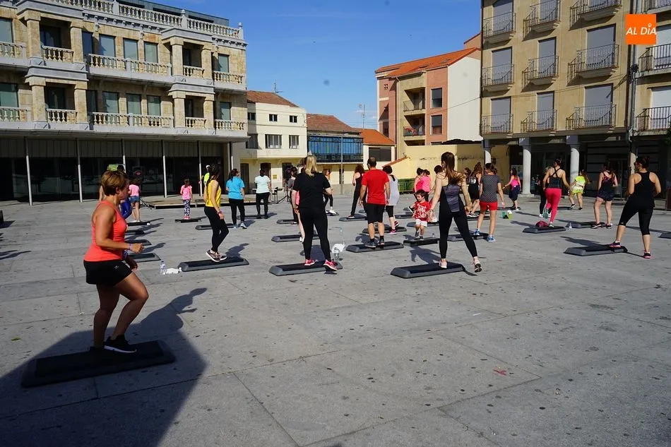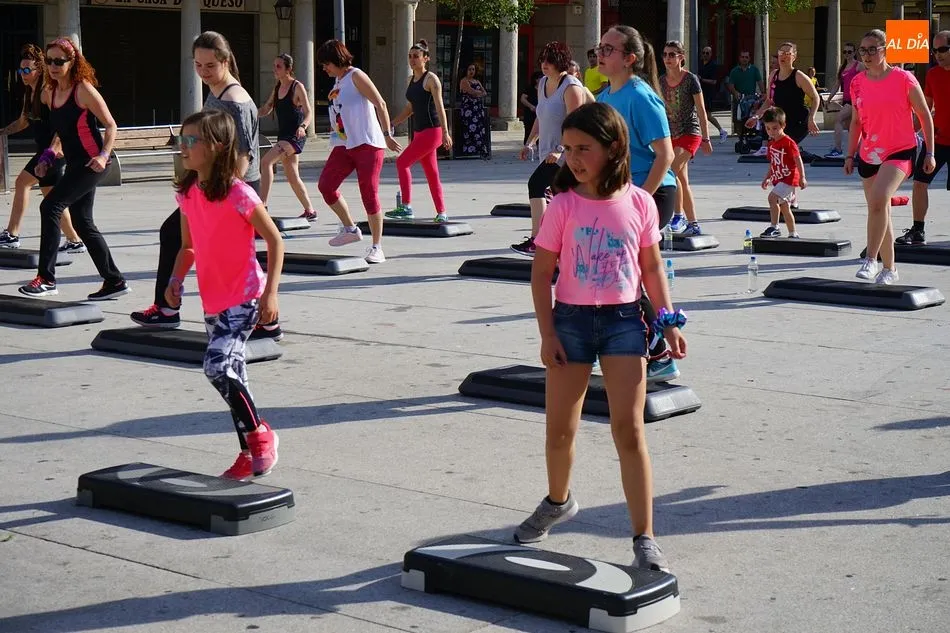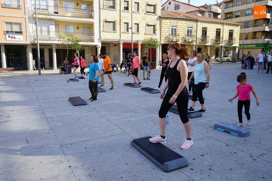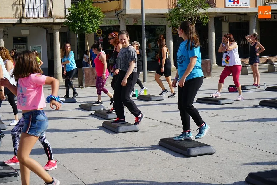 La Plaza Mayor de Guijuelo se ha convertido esta tarde en una sala de baile deportivo de carácter solidario. Más de medio centenar de personas de todas las edades han participado en una sesión a favor de la Asociación de Padres, Familiares y Amigos de niños oncológicos, Pyfano. Esta clase magistral de las modalidades Step, Bodytono y Zumba ha isdo un éxito, acompañada de actividades infantiles, música y sorteo de regalos.