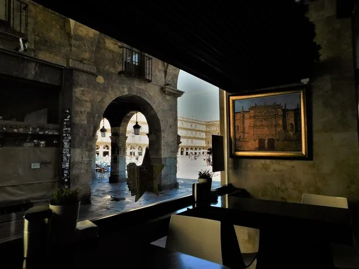 Desde el Café Real vimos el ayuntamiento como una tela mágica detrás de un farol simbólico. Los arcos densos nos enmarcaron el esplendor de la fachada. Leímos carteles curiosos: ?la cerveza es como un pan líquido?, admiramos una fuente de cerámica debajo de un arco mudéjar. En Jamón y Tapas el dueño nos hizo recordar otros tiempos, nos habló de su padre el campeón del mundo de boxeo Miguel Velázquez, nos hizo admirar la admiración de un hijo a su padre. La plaza alegre nos mostró sus impecables líneas musicales detrás de faroles como cantos. En el bar La Tahona nos pusieron vino de la Sierra de Francia. Nos sorprendió conocerlo y nos pareció íntimo y noble. Desde allí amamos uno de los ángulos de la plaza, el vuelo de los balcones de metal. Y las tapas fueron un festín en todas partes.