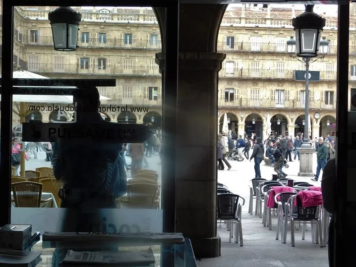 Viajamos alrededor de la Plaza Mayor de Salamanca para conocerla intensamente. Peregrinamos para captar la música infinita de esa plaza. Tomamos una copa en cada bar. Vimos la plaza desde muchos encuadres diferentes, tuvimos cien visiones de su encanto.