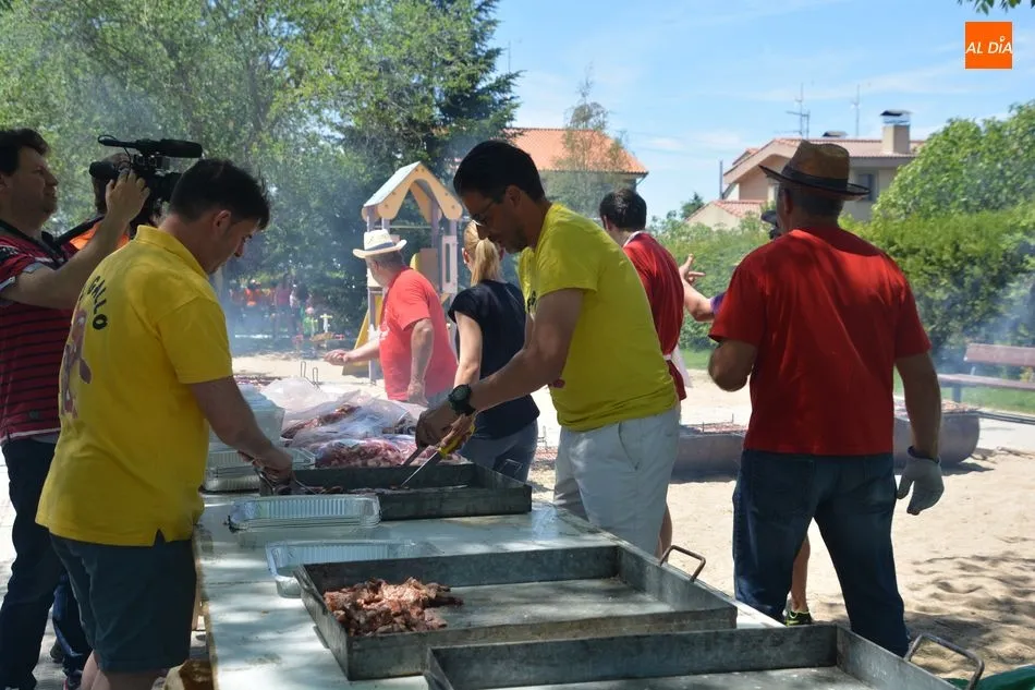 Villamayor se prepara para disfrutar de un intenso fin de semana festivo en honor a la Virgen de los Remedios. Después de los carretones, cabezudos y el festival teatro de calle, ha tenido lugar la tradicional convivencia de peñas, junto al parque Francesco Tonucci, que han inundado de color, animación y bullicio las calles de esta localidad del alfoz en una jornada marcada por el ambiente festivo y el calor.