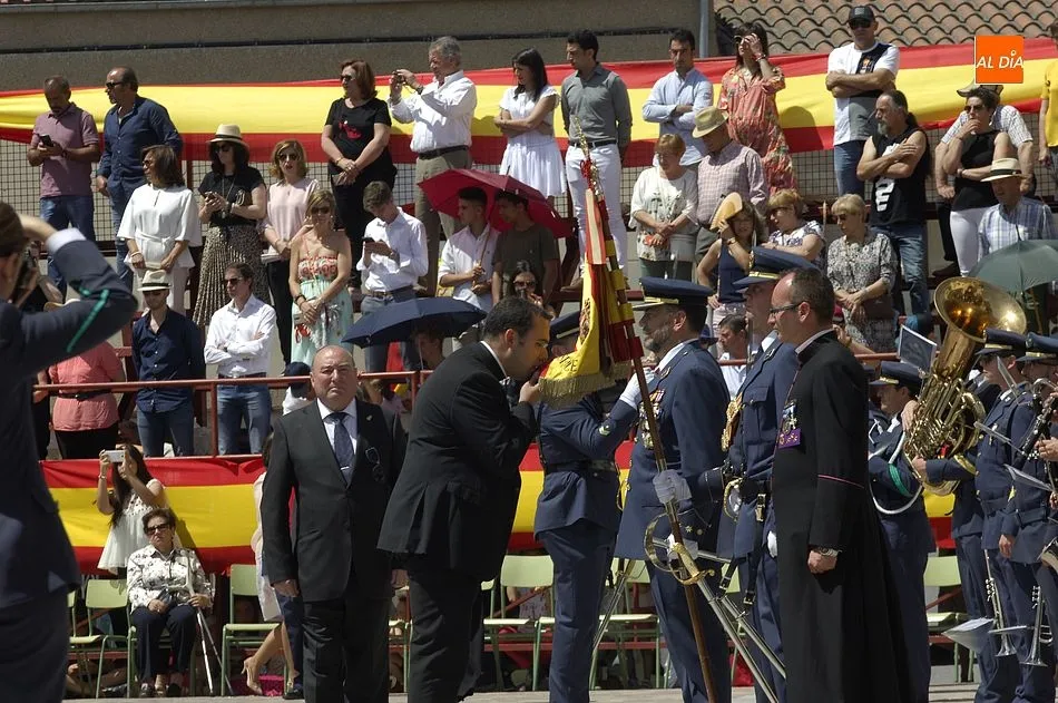 El acto fue presidido por los máximos responsables de las mencionadas instituciones: Manuel Rufino García, alcalde de La Fuente, y el coronel Carlos María Bernardo Anaya, jefe de la Base Aérea y del Grupo de Escuelas de Matacán; quienes estuvieron acompañados por un centenar de miembros del Ejército del Aire, así como por más de 150 civiles que se habían inscrito para jurar bandera (todos ellos mayores de 18 años y no incapacitados por sentencia judicial).
