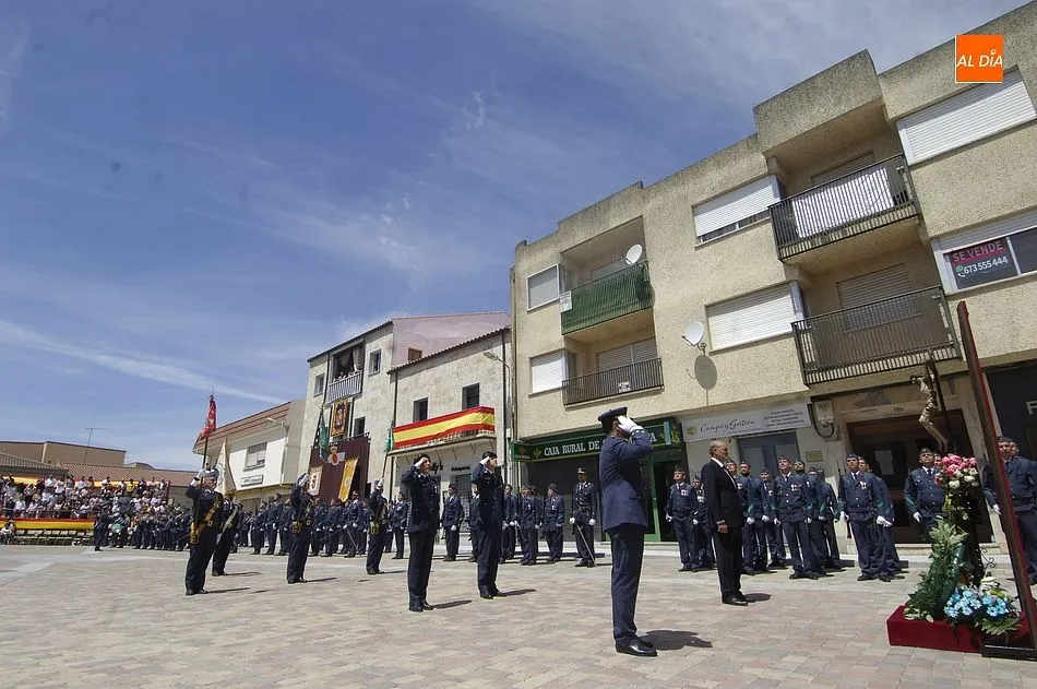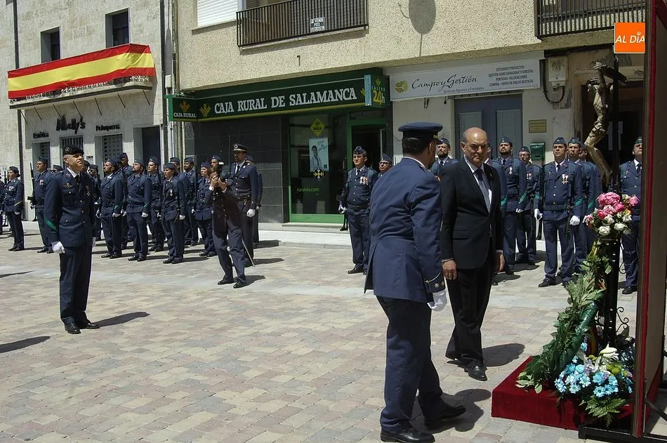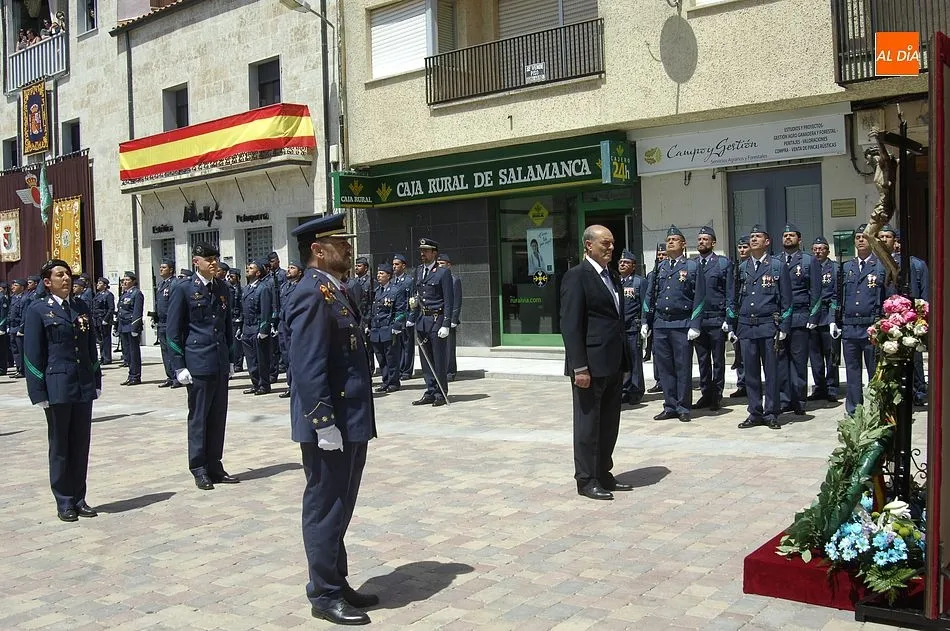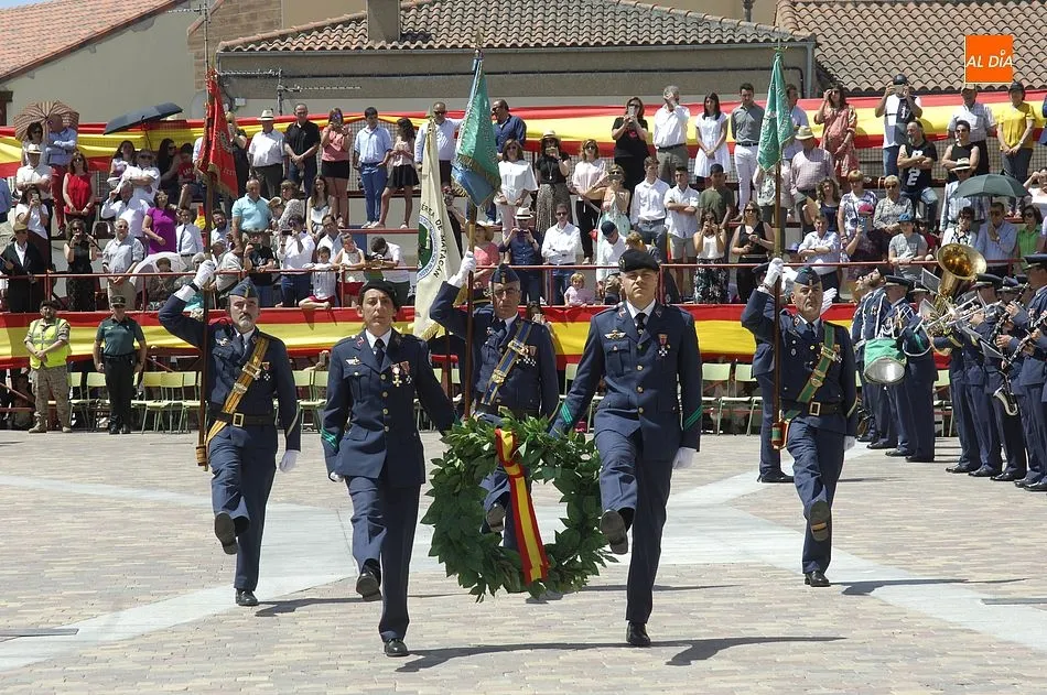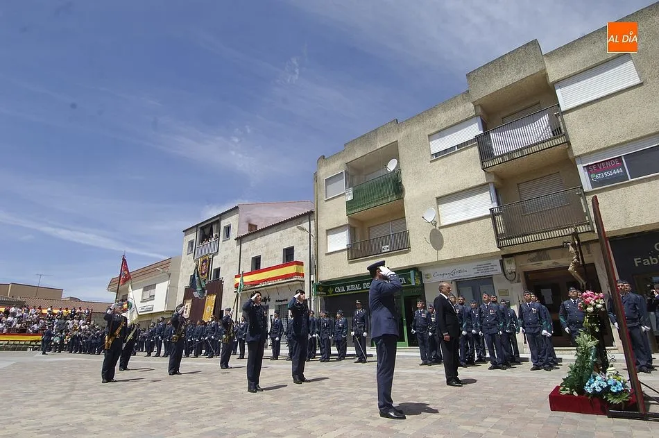 Tras su intervención, sonó el himno del Ejército del Aire, antes de realizar las autoridades un homenaje a los caídos. La mañana de patriotismo vivida en La Fuente de San Esteban finalizó con la despedida de la bandera de España y de las tropas militares participantes.