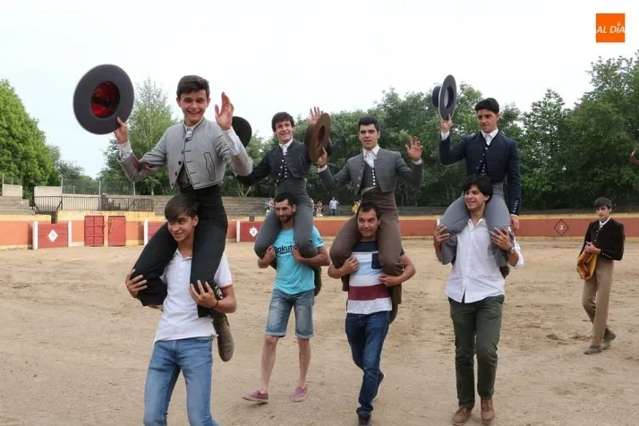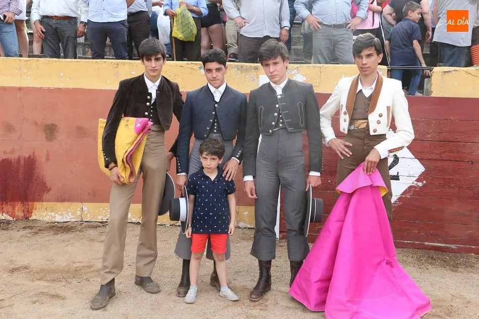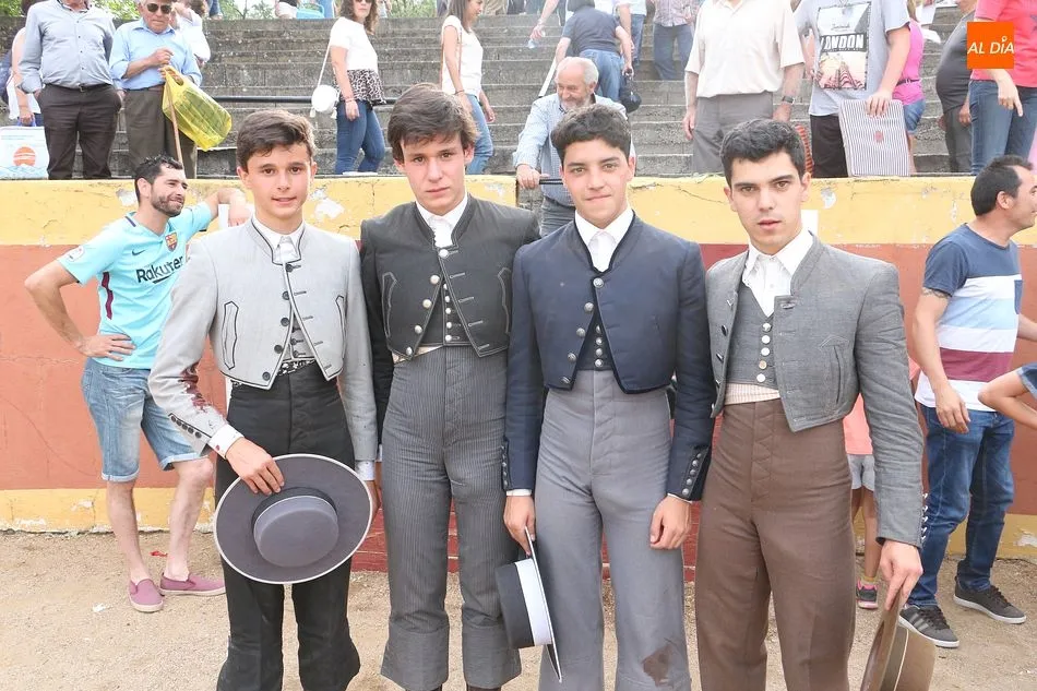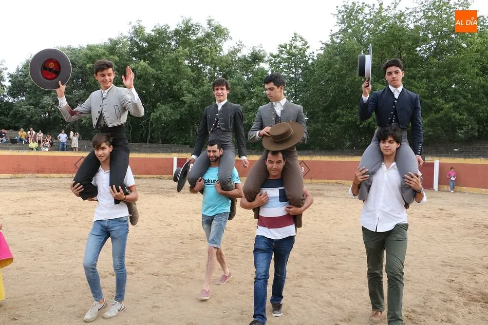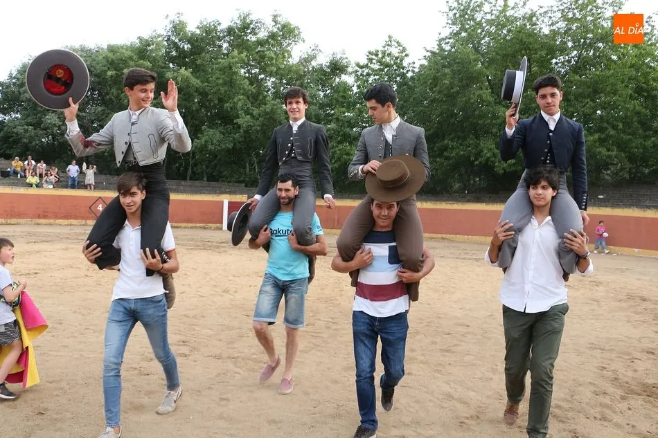 n, Fabio Jiménez, Manuel Martín, Daniel Martín y Mario Navas saltaron al ruedo en una calurosa tarde con media entrada en la plaza de la localidad. Los cuatro estudiantes tuvieron suerte y maña, para salir a hombros de la plaza ante el aplauso de los vecinos.