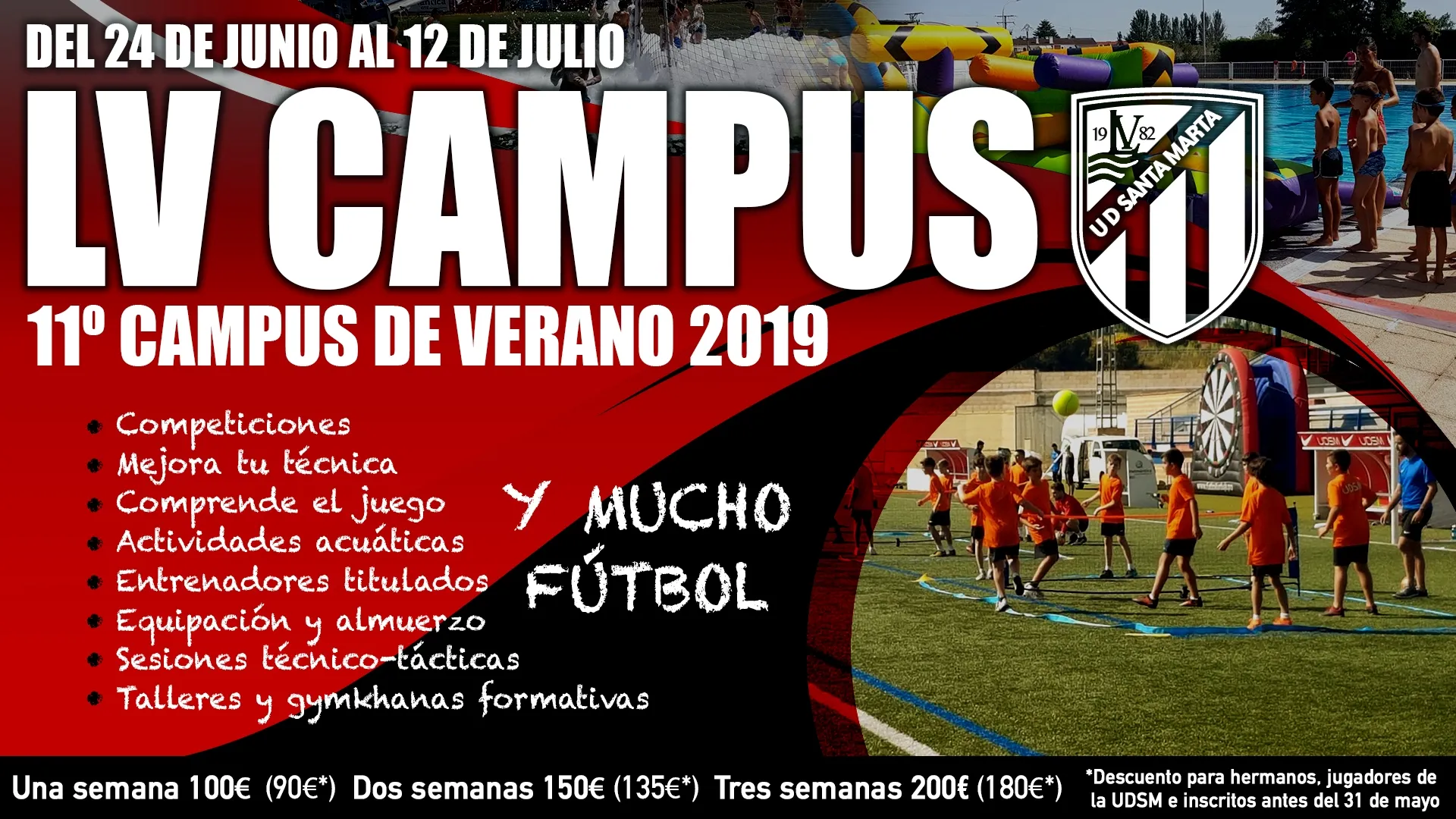 La Unión Deportiva Santa Marta ha lanzado una nueva edición de su campus de verano para niños y niñas nacidos entre los años 2005 y 2014. El Campus de Verano Labore Victoriam cumple once años con la intención de que los más pequeños puedan mejorar sus habilidades técnicas y tácticas en el mundo del fútbol, pero también de todo lo que conlleva el verano: piscina, juegos, gymkanas, actividades de estrategia, excursiones? y todo ello organizado por la Unión Deportiva Santa Marta y con el patrocinio de Nike, Caja Rural de Salamanca, Eleclerc Salamanca, Opel Marta Móvil y Limcasa Lavandería Profesional.