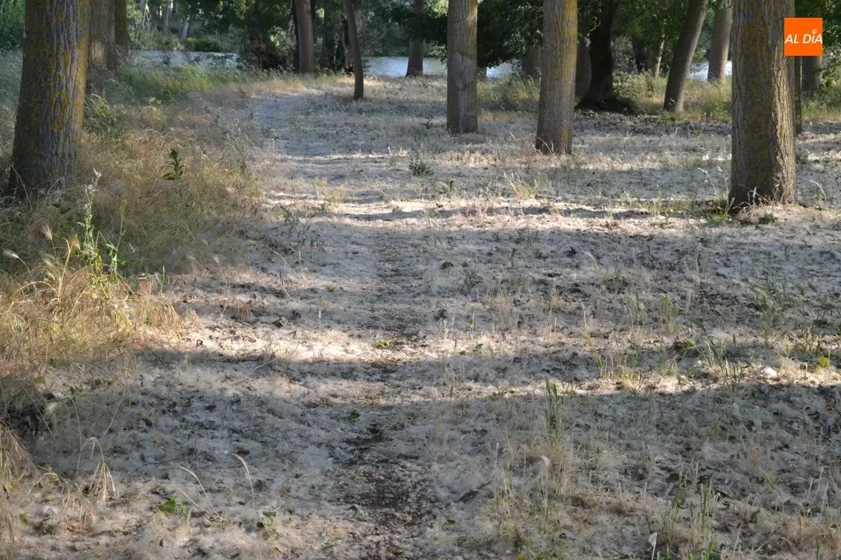Eso ocurre por ejemplo en la Alameda Vieja de Ciudad Rodrigo, donde la superficie del tramo de la misma que aún conserva todo el arbolado (frente a las otras zonas donde se han hecho importantes talas en los últimos años) está cubierta casi al completo por estas pelusas, conformando un manto blanco que más parece propio del invierno que del inminente verano.
